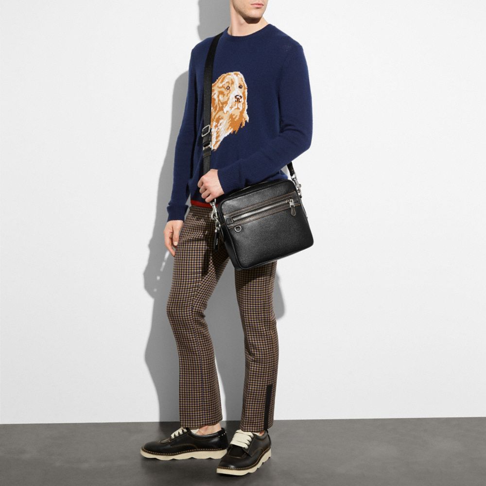 Glovetanned pebble leather| Inside zip, cell phone and multifunction pockets| Inside tech sleeve with secure tab| Zip closure, fabric lining| Outside zip and slip pockets| Adjustable strap with 53 1/4" drop for shoulder or crossbody wear| 10 3/4" (L) x 9 1/2" (H) x 3 1/4" (W)