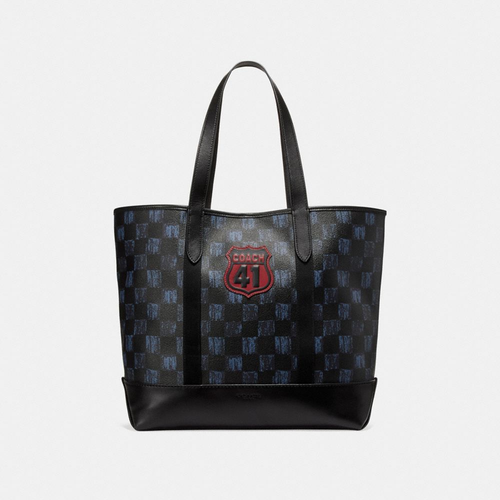 WEST TOTE WITH GRAPHIC CHECKER PRINT