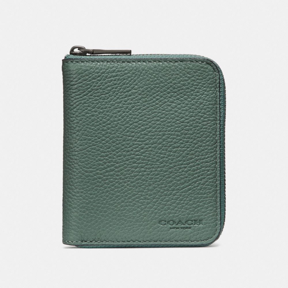 Pebble leather| Four credit card slots| Bill compartment| Zip-around closure| 3 1/4" (L) x 4 1/4" (H) x 3/4" (W)