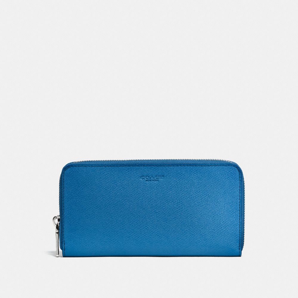 Burnished crossgrain leather| 12 credit card slots| Full-length bill compartments| Zip coin pocket| Zip-around closure| Outside open pocket| 7 1/2" (L) x 4" (H) x 3/4" (W)| Fits all phone sizes up to an iPhone X and Samsung S7 Edge
