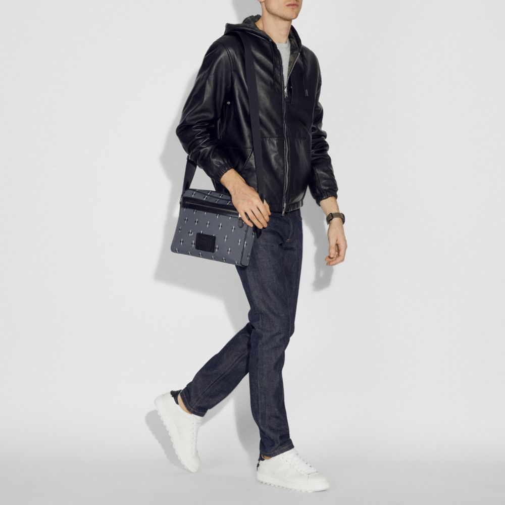 Printed CORDURA® fabric with calf leather details| Inside zip, cell phone and multifunction pockets| Inside tech sleeve with secure tab| Zip closure, fabric lining| Outside zip and magnetic snap pockets| Adjustable strap with 53" drop for shoulder or crossbody wear| 10 3/4" (L) x 9 1/2" (H) x 2 1/4" (W)| CORDURA® is a trademark of INVISTA for durable fabric