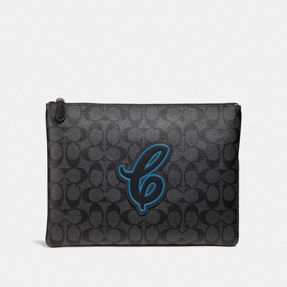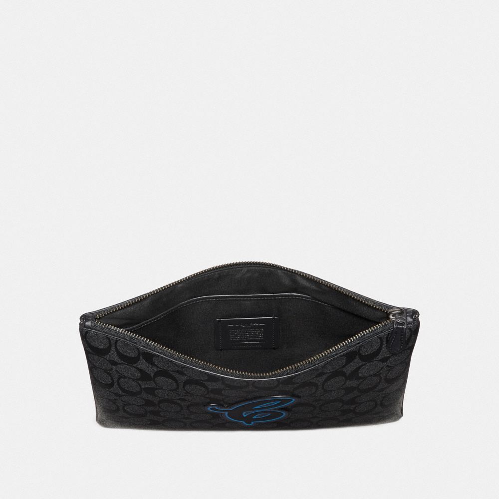 LARGE POUCH IN SIGNATURE CANVAS WITH COACH MOTIF