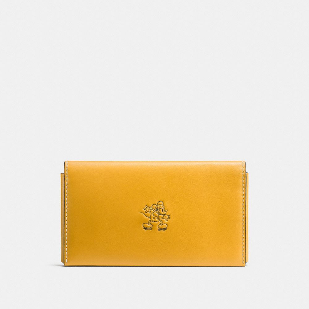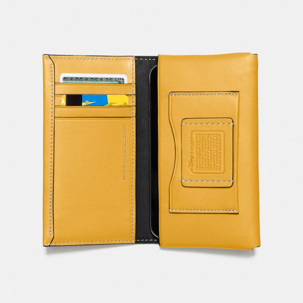 | Refined calf leather| Five credit card slots| Inside phone pocket| 6" (L) x 3" (H) | Disney x Coach