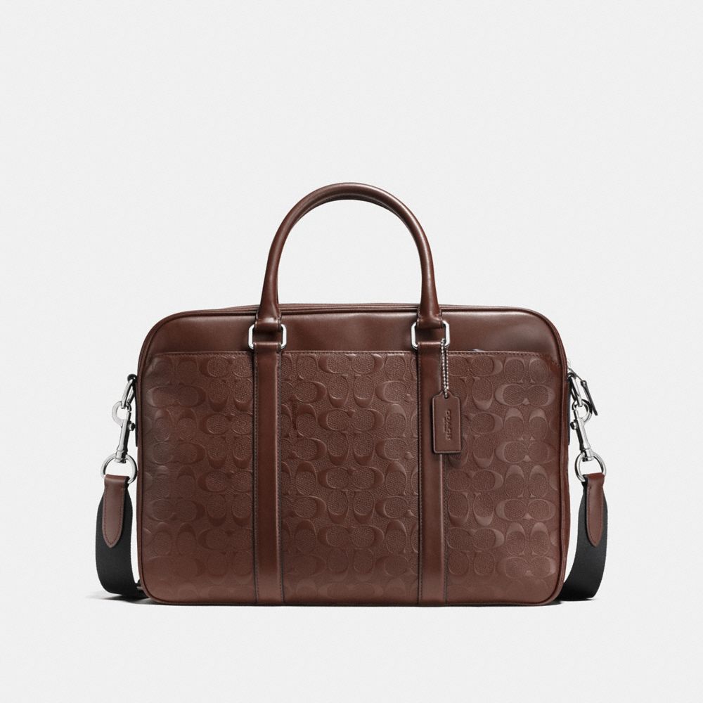 PERRY SLIM BRIEF IN SIGNATURE CROSSGRAIN LEATHER