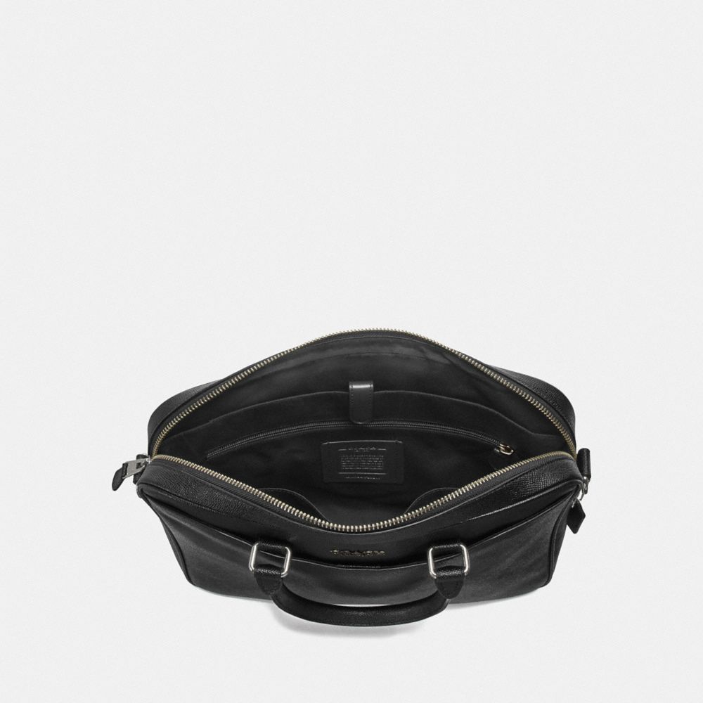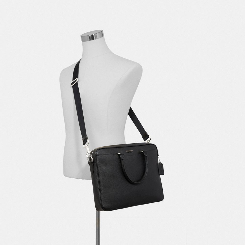 Crossgrain leather| Inside zip, cell phone and multifunction pockets| Inside laptop sleeve with secure tab| Zip closure, fabric lining| Handles with 5" drop| Outside magnetic snap pockets| Detachable strap with 53" drop for shoulder or crossbody wear| 14" (L) x 11" (H) x 2" (W)