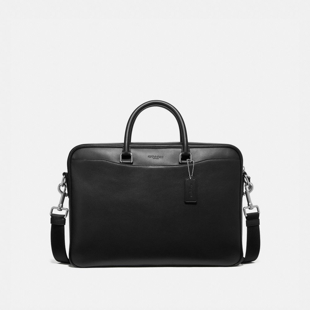 Smooth calf leather| Inside zip, cell phone and multifunction pockets| Inside laptop sleeve with secure tab| Zip closure, fabric lining| Handles with 5" drop| Outside magnetic snap pockets| Detachable strap with 53" drop for shoulder or crossbody wear| 16 1/4" (L) x 16 1/2" (H) x 3 1/4" (W)