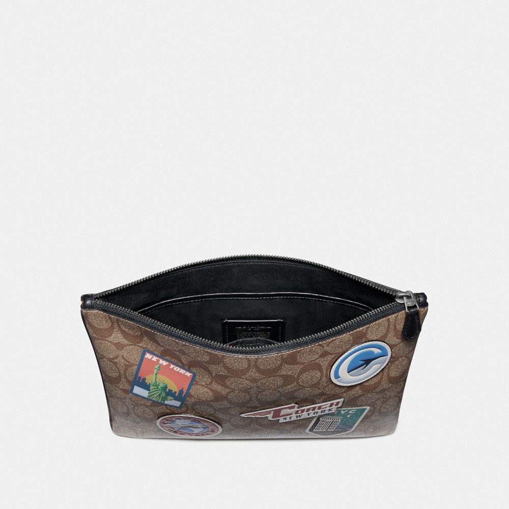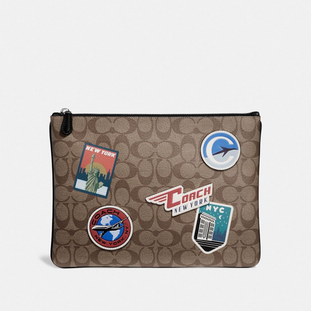 LARGE POUCH IN SIGNATURE CANVAS WITH TRAVEL PATCHES