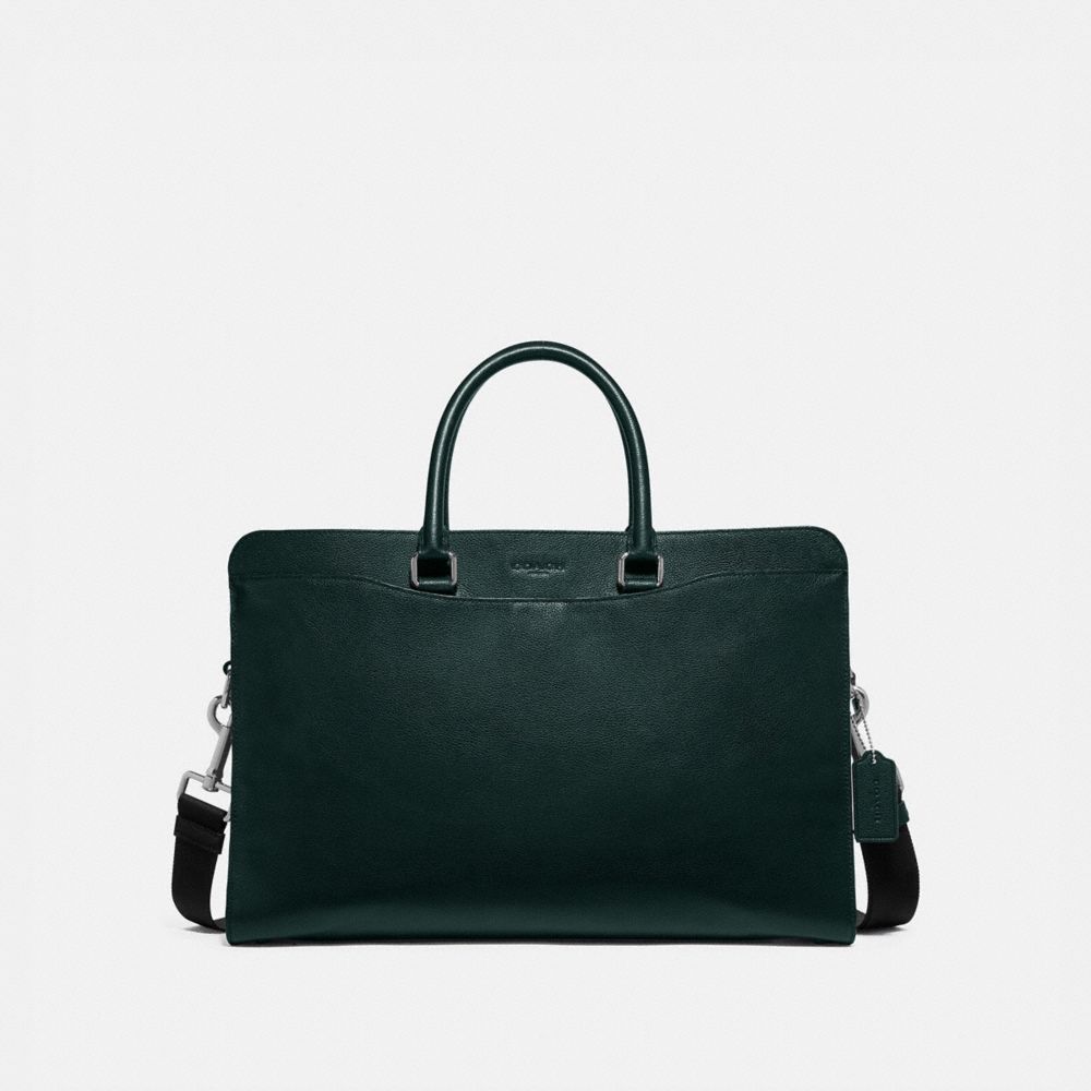 Smooth calf leather| Inside zip, cell phone and multifunction pockets| Inside laptop sleeve with secure tab| Zip closure, fabric lining| Handles with 5" drop| Outside magnetic snap pockets| Detachable strap with 53" drop for shoulder or crossbody wear| 16 1/4" (L) x 11" (H) x 3 1/4" (W)