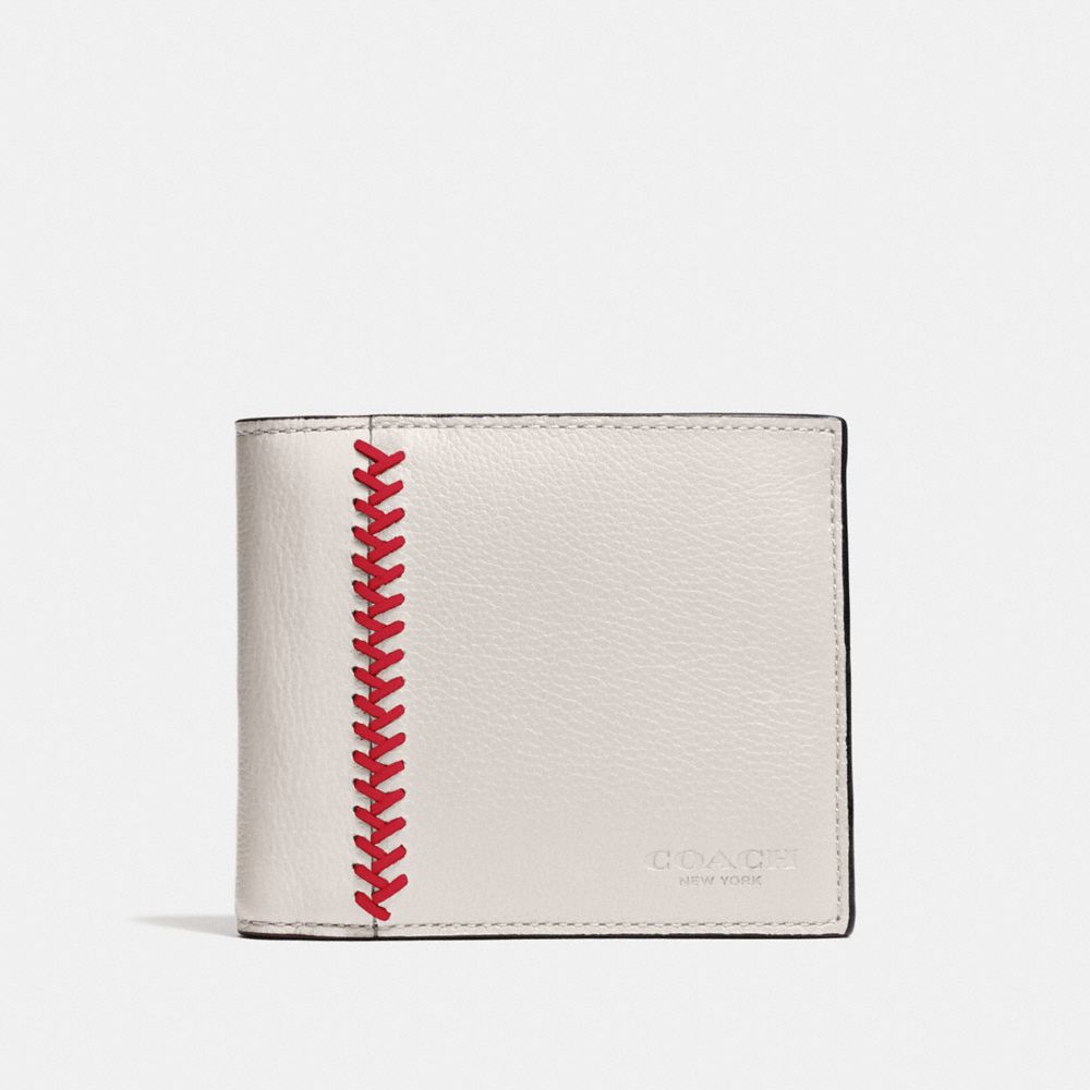 COMPACT ID WALLET IN BASEBALL STITCH LEATHER
