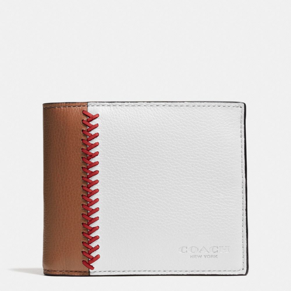 COMPACT ID WALLET IN BASEBALL STITCH LEATHER