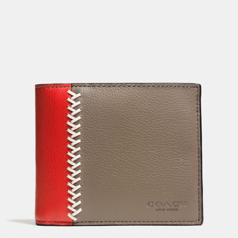 COMPACT ID WALLET IN BASEBALL STITCH LEATHER