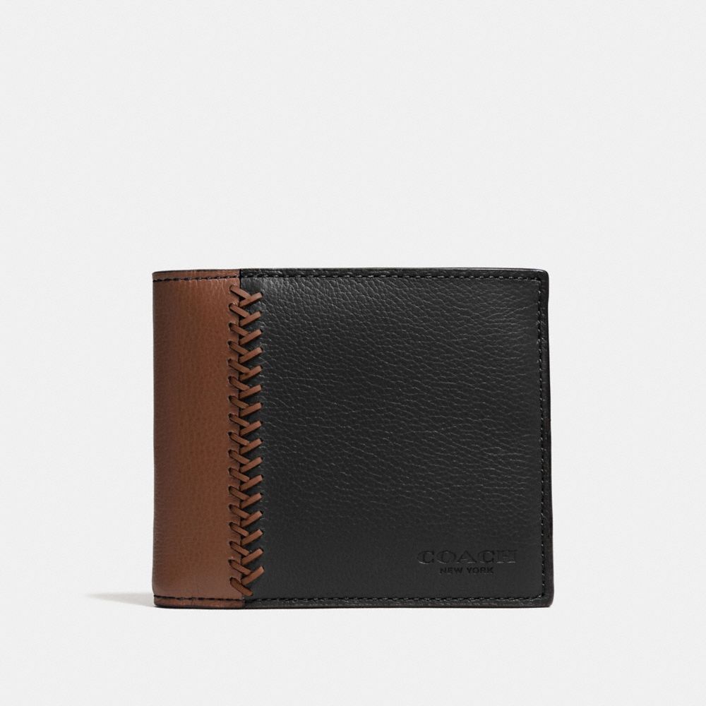 COMPACT ID WALLET IN BASEBALL STITCH LEATHER