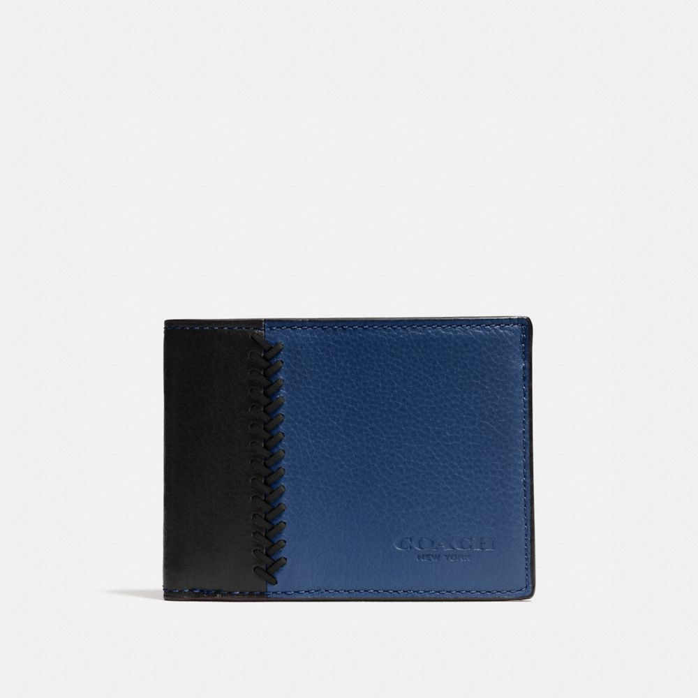 SLIM BILLFOLD ID WALLET IN BASEBALL STITCH LEATHER
