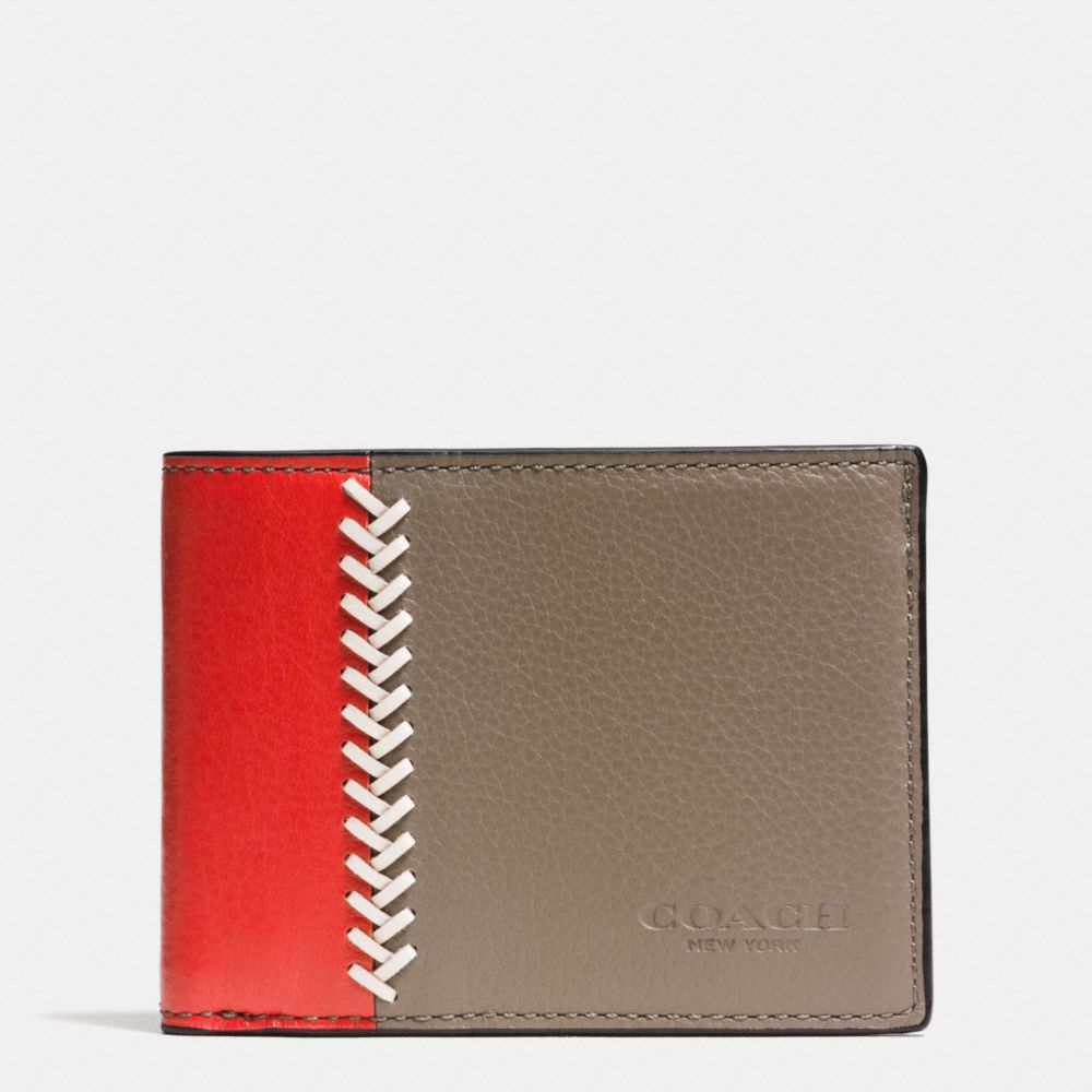 SLIM BILLFOLD ID WALLET IN BASEBALL STITCH LEATHER