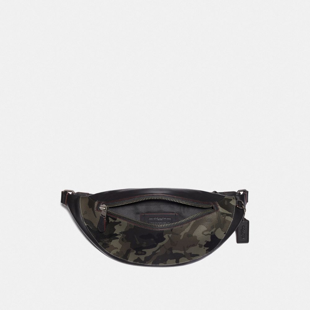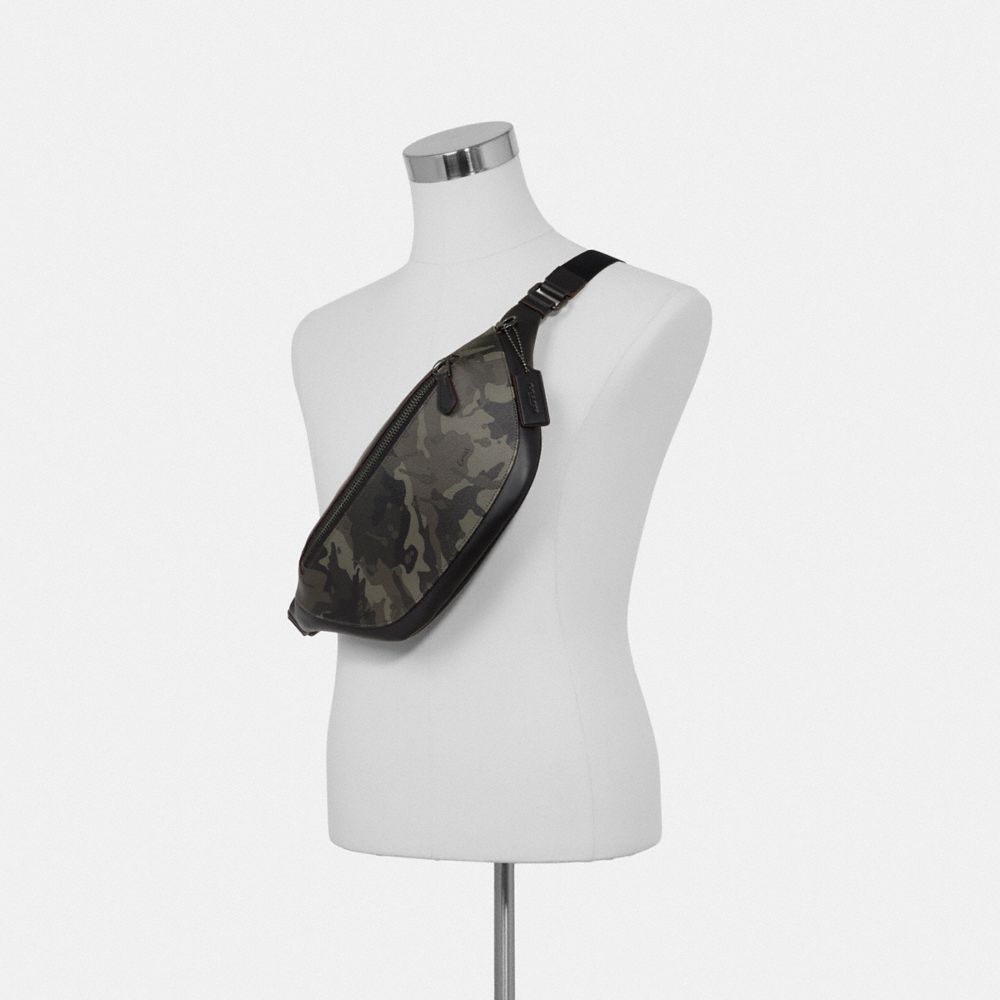 Printed coated canvas and smooth calf leather| Inside multifunction pocket| Zip closure, fabric lining| Outside zip pocket| Adjustable strap for wear at waist| 13" (L) x 6 1/2" (H)