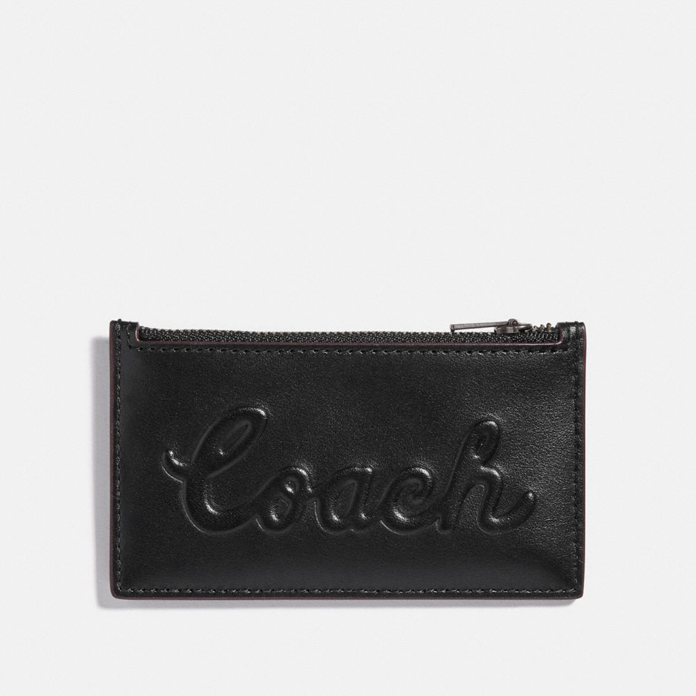 ZIP CARD CASE WITH COACH SCRIPT