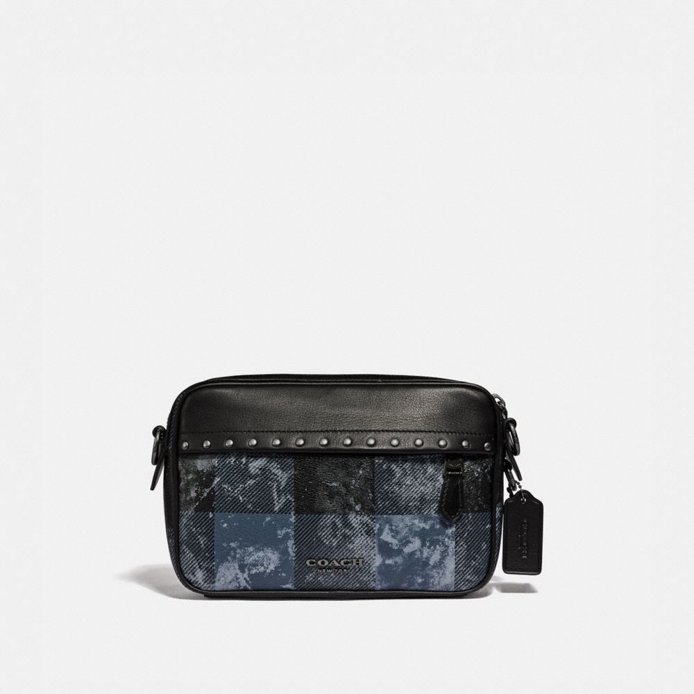 GRAHAM CROSSBODY WITH GRUNGE PLAID PRINT AND STUDS
