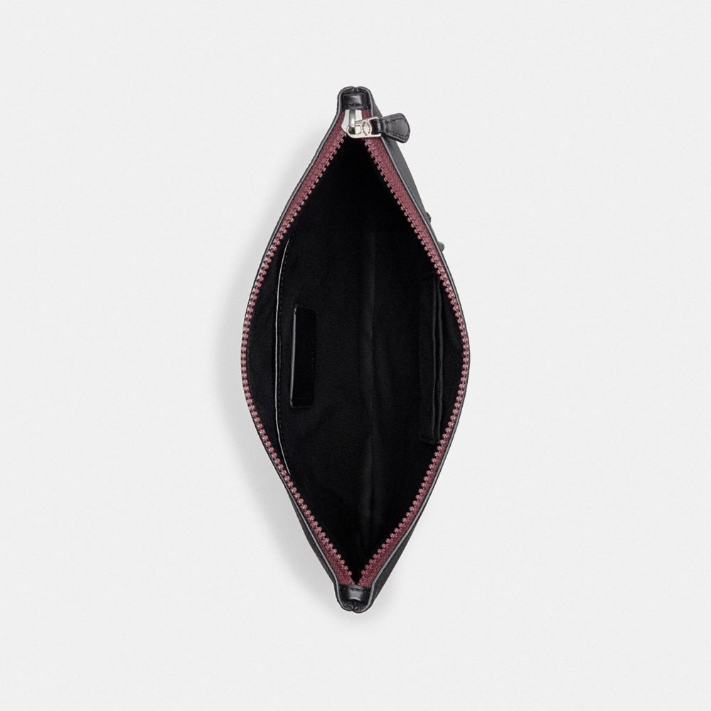 Refined pebble leather| Two credit card slots| Inside snap pocket| Zip-top closure, fabric lining| 11 3/4" (L) x 8 1/2" (H)
