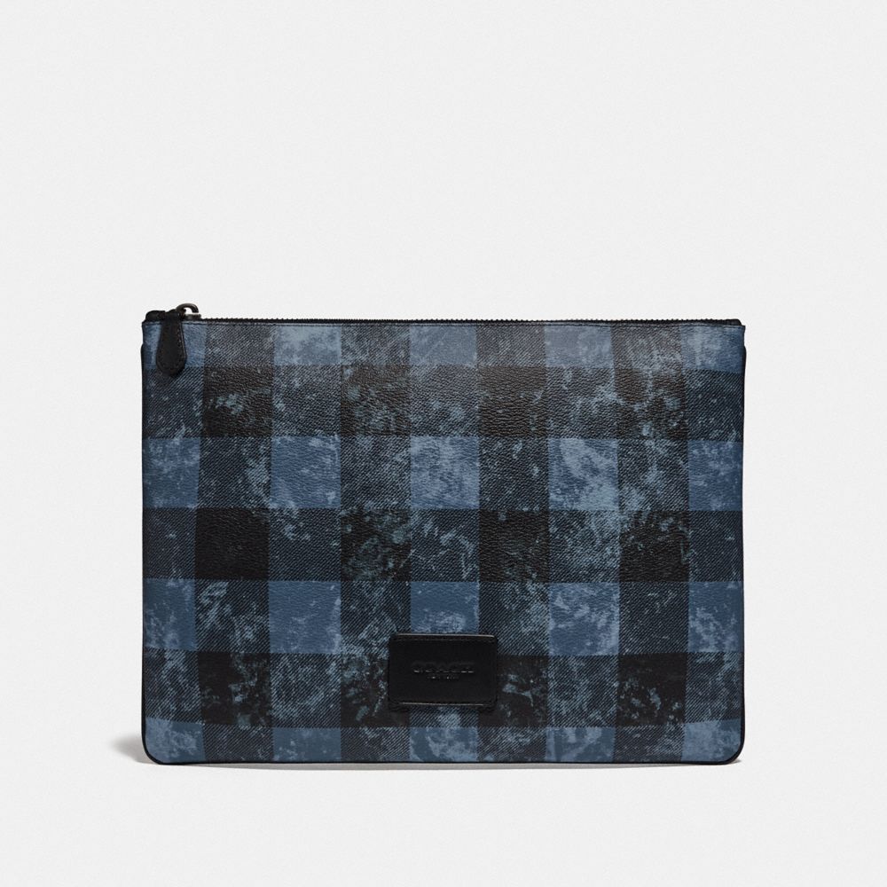 LARGE POUCH WITH GRUNGE BUFFALO PLAID PRINT