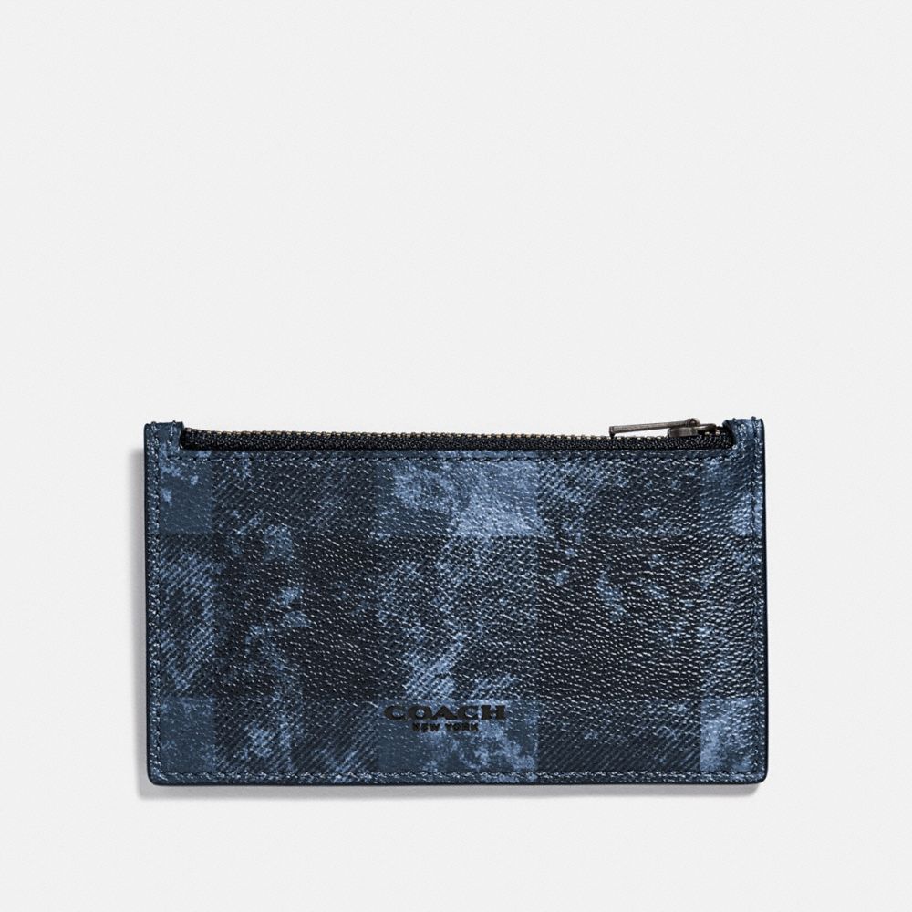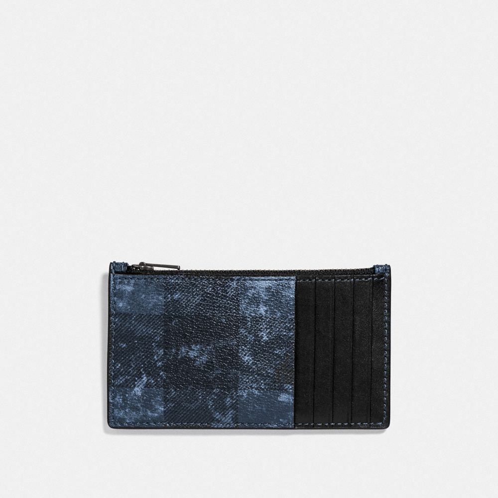 ZIP CARD CASE WITH GRUNGE BUFFALO PLAID PRINT