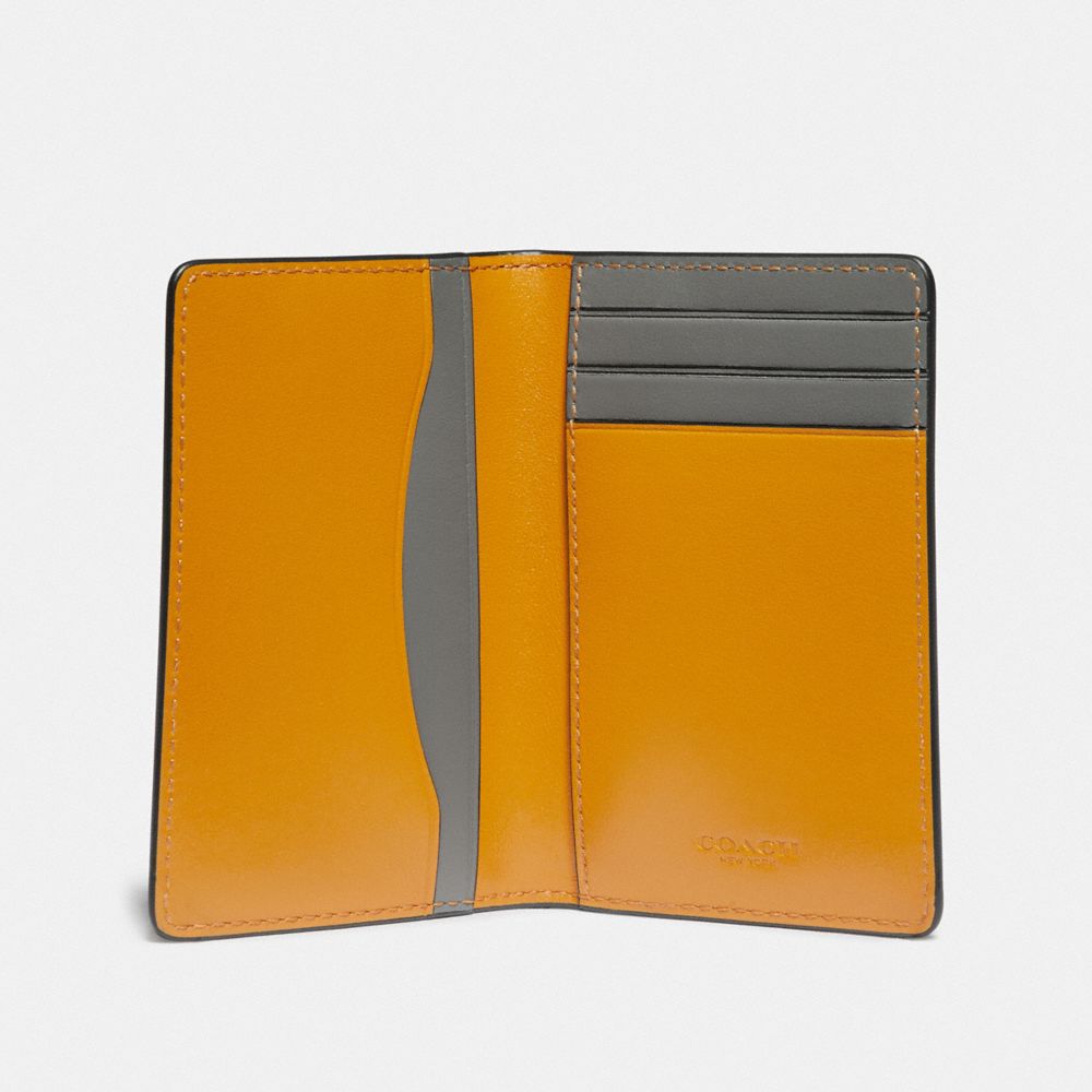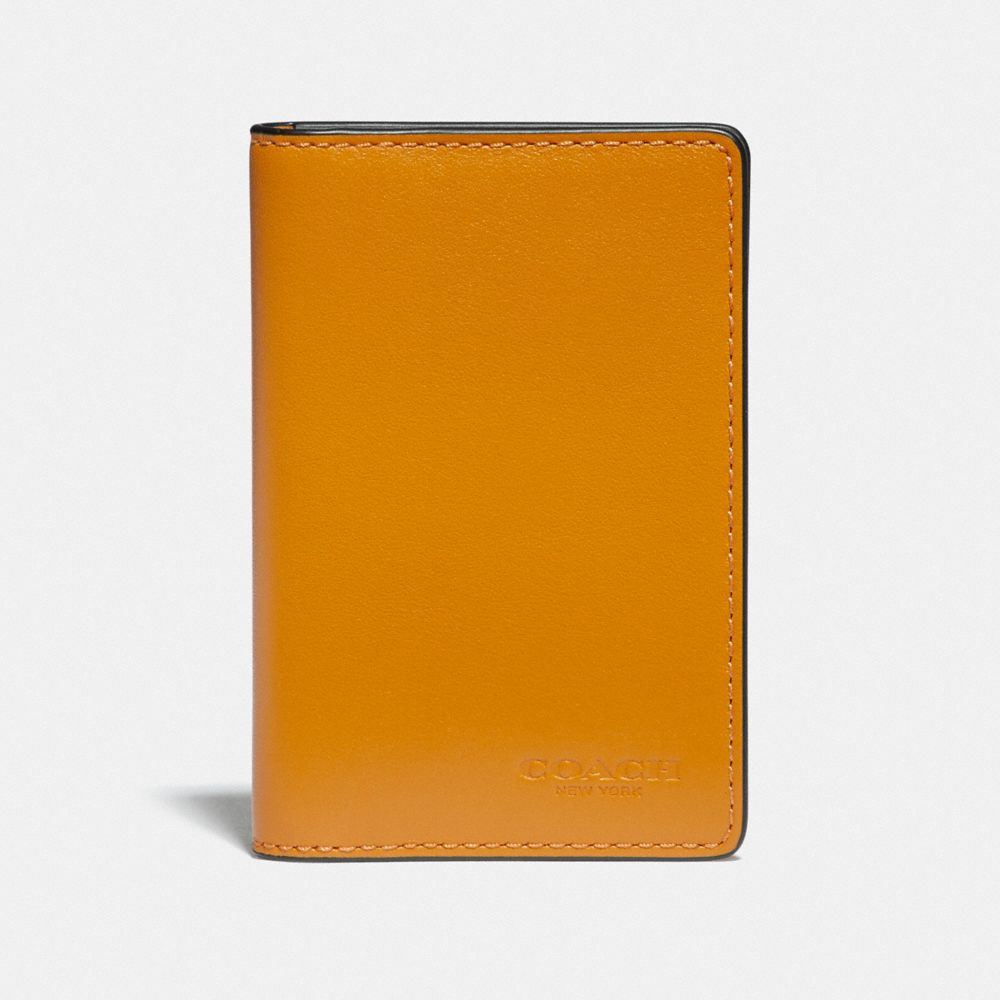 Refined calf leather| Four credit card slots| Outside slip pocket| 3" (L) x 4 1/2" (H) x 3/4" (W)