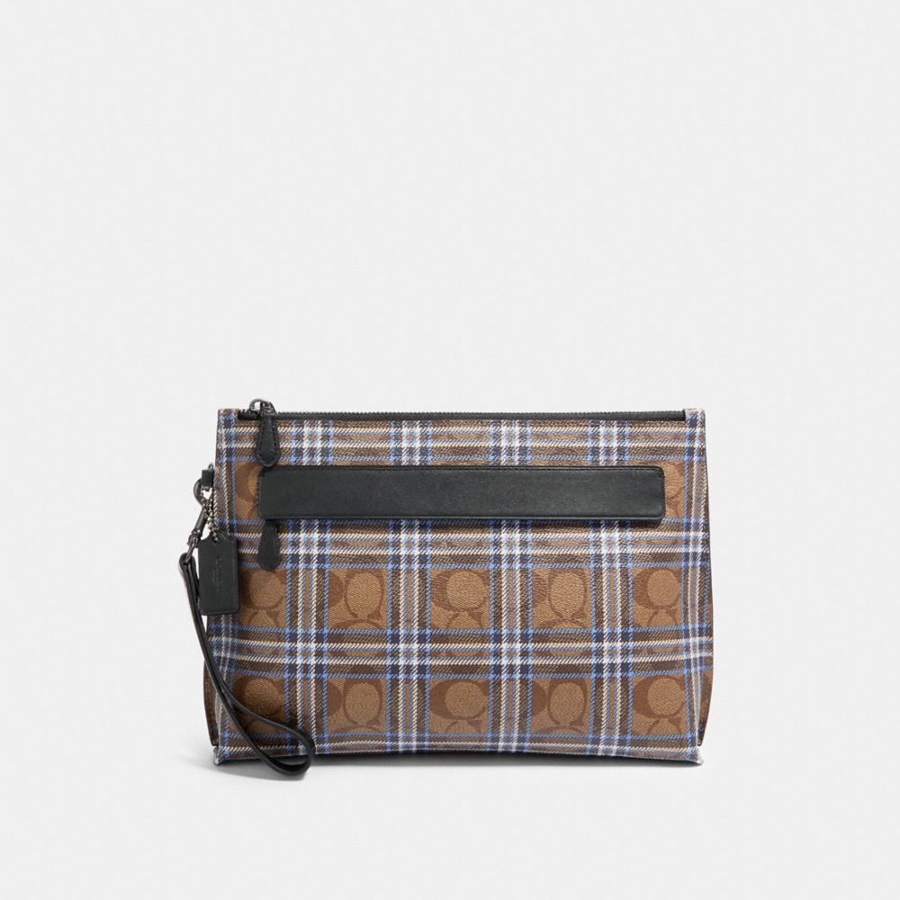 CARRYALL POUCH IN SIGNATURE CANVAS WITH SHIRTING PLAID PRINT