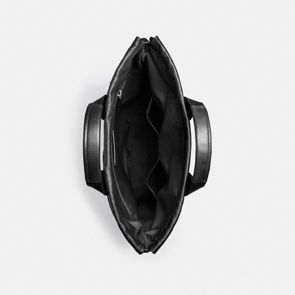 Signature jacquard and smooth calf leather| Inside zip, cell phone and multifunction pockets| Drawstring closure, fabric lining| Handles with 4 1/4" drop| Outside zip pocket| 13 3/4" (L) x 15 3/4" (H) x 2" (W)