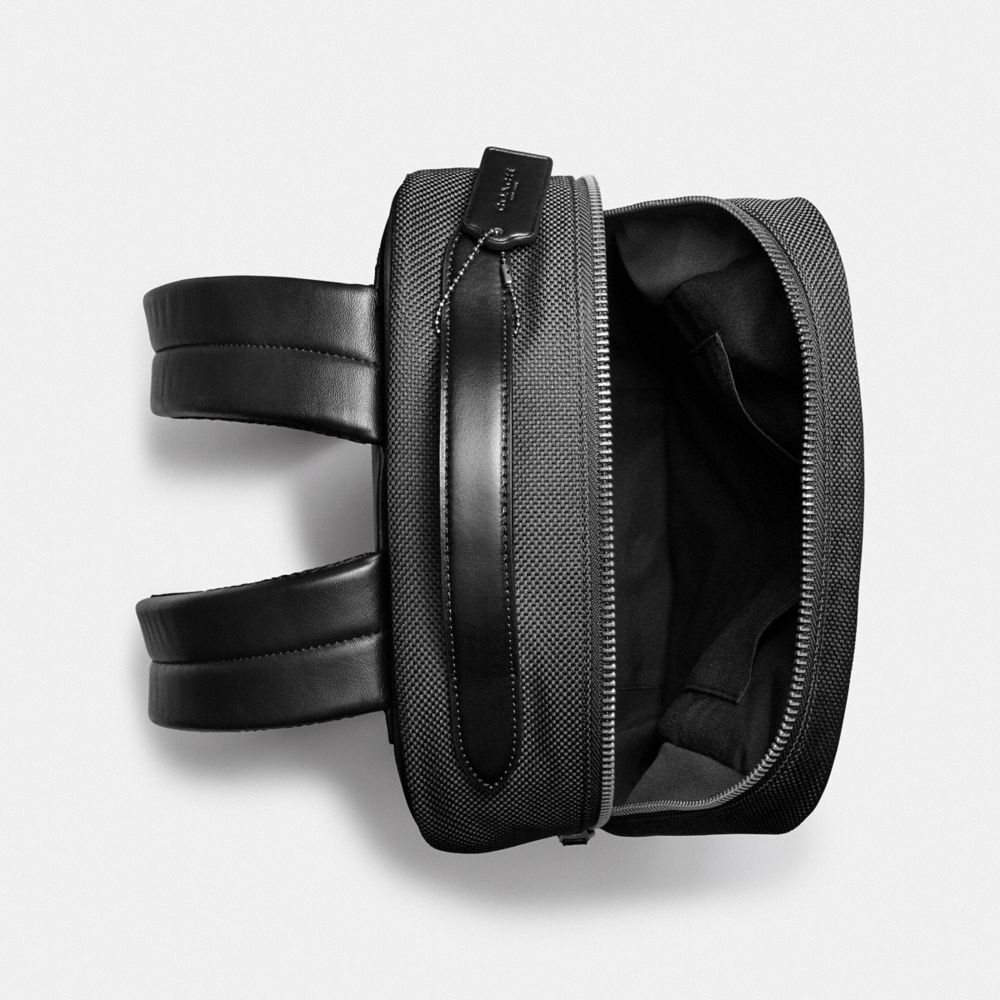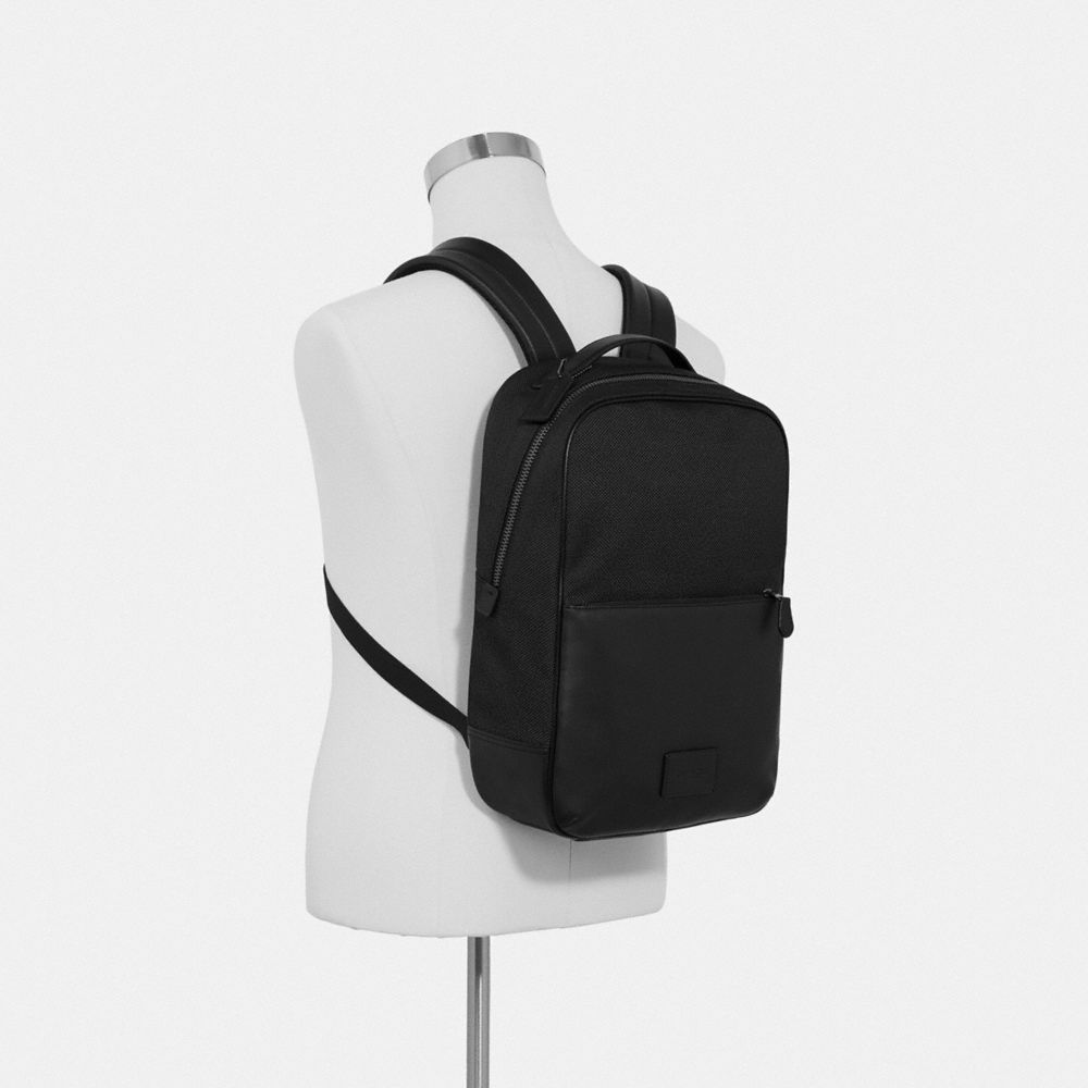 Nylon and smooth calf leather| Inside multifunction pocket| Zip closure, fabric lining| Top handle with 3/4" drop| Outside zip pocket| Adjustable shoulder straps| 10 1/2" (L) x 15 1/2" (H) x 4 1/4" (W)