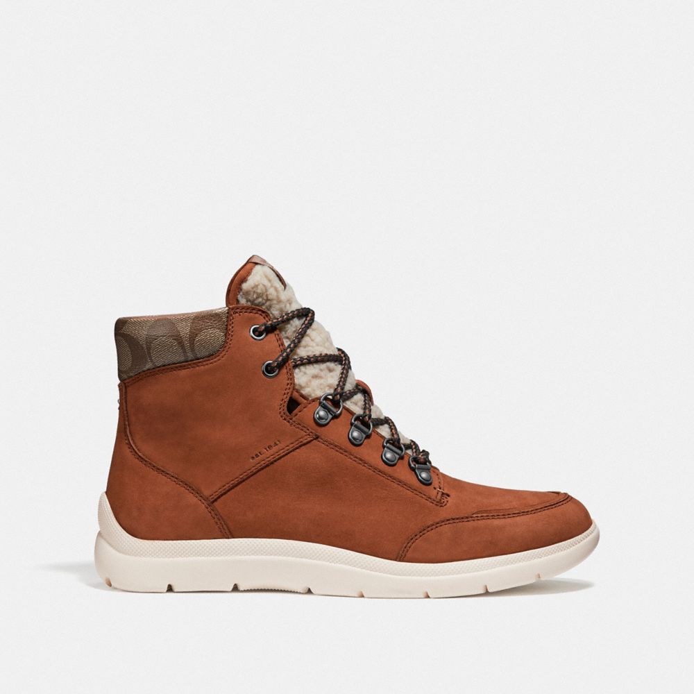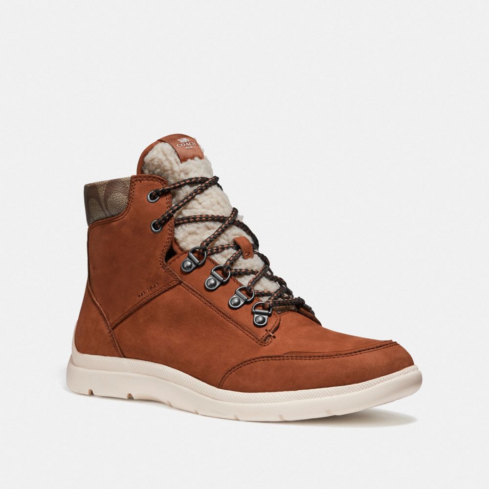 Leather and Signature coated canvas upper| Fabric lining and footbed| Rubber outsole| Lace-up closure