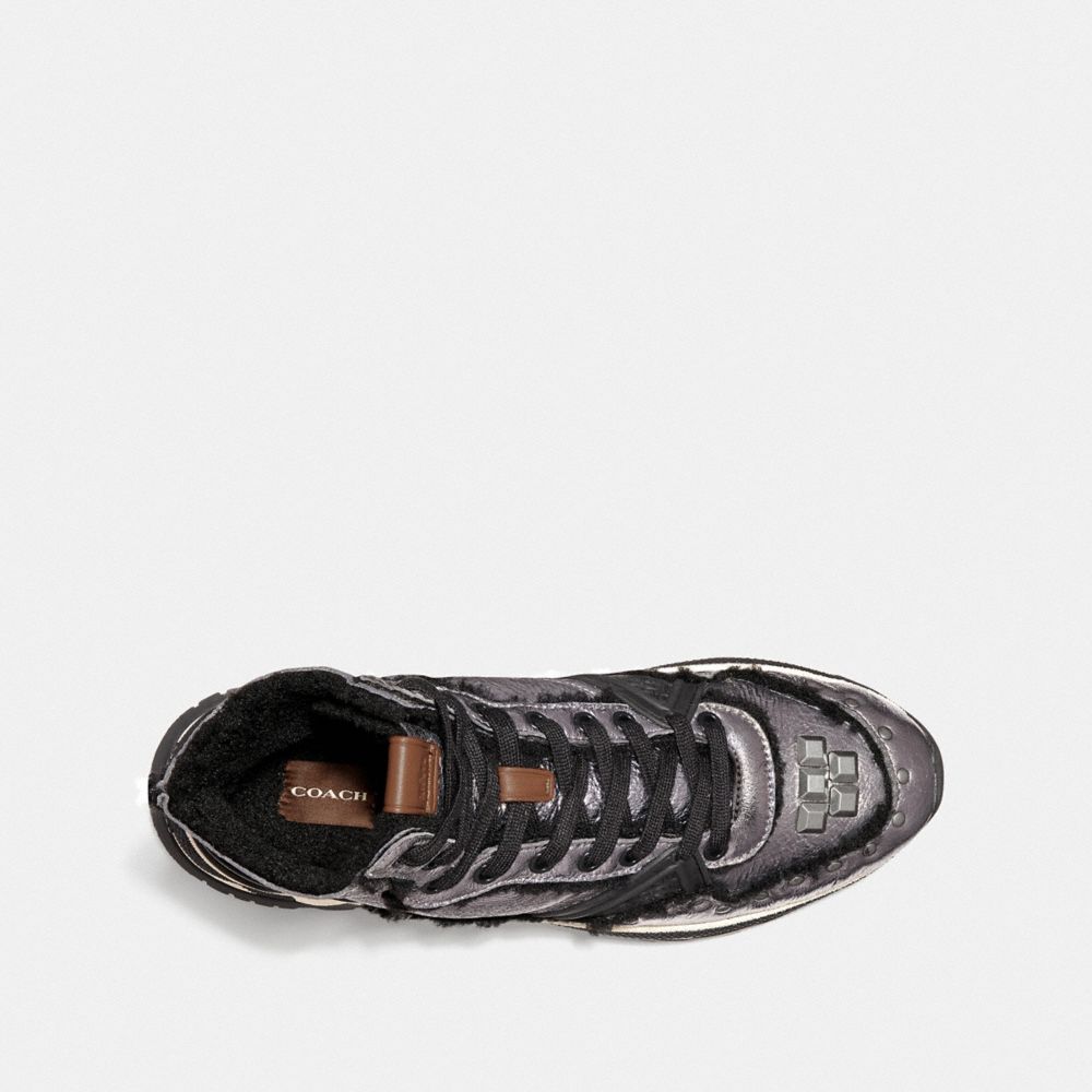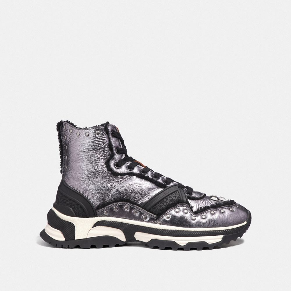 Metallic leather upper| Shearling details| Cotton and leather lining| Rubber outsole| Lace-up closure