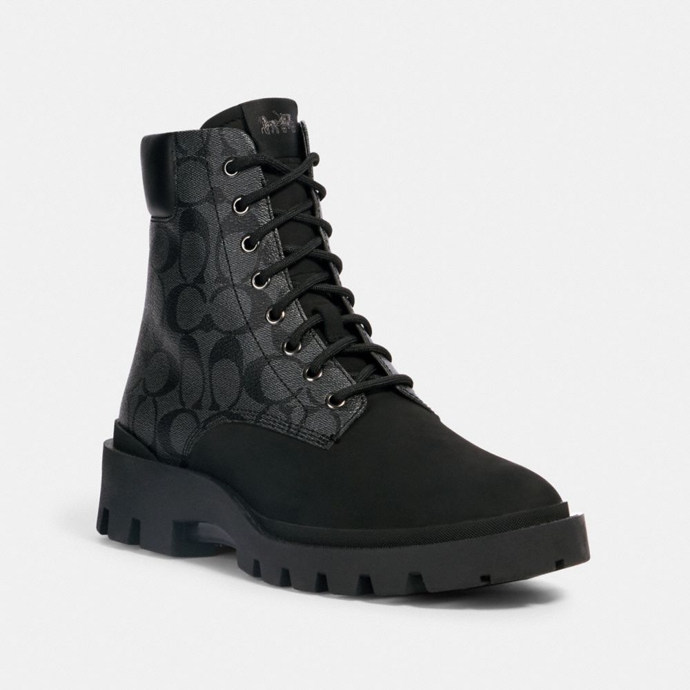 Signature coated canvas, suede and leather upper| Fabric lining and footbed| Rubber outsole| Lace-up closure