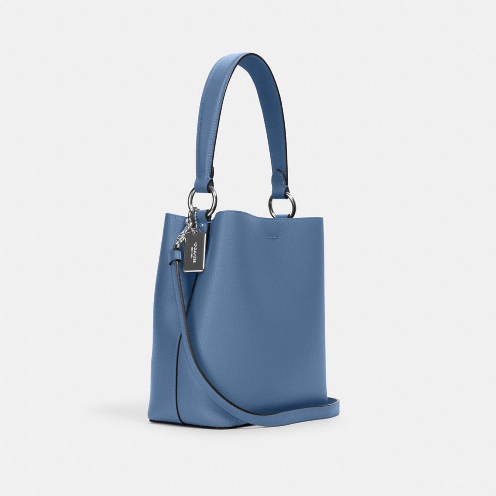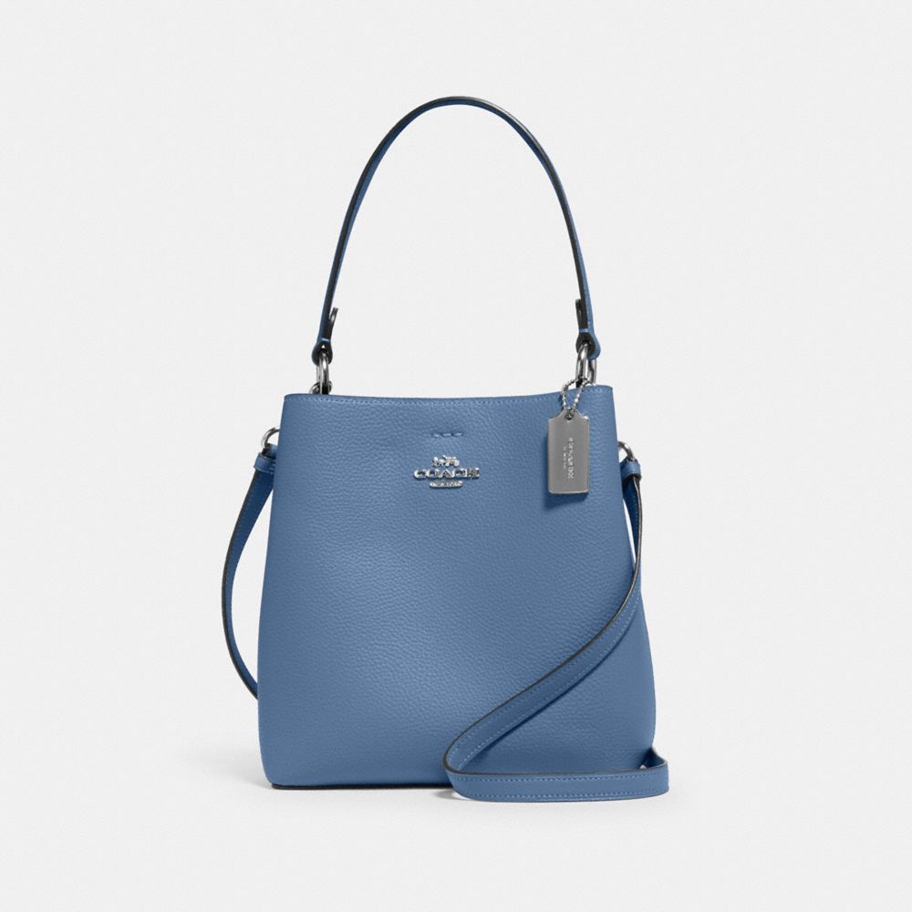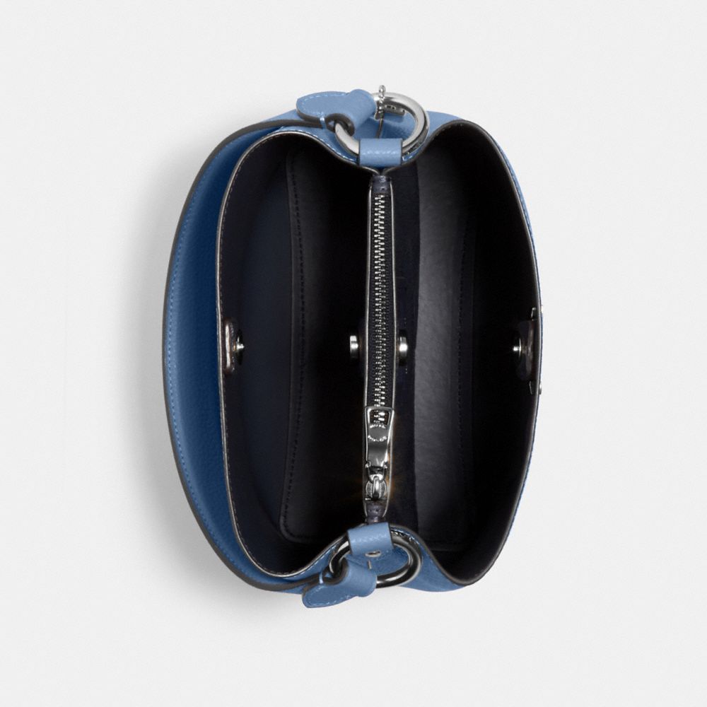 Double face leather| Center zip compartment| Snap closure| Handle with 6 3/4" drop| Detachable strap with 22" drop for shoulder or crossbody wear| 8 1/2" (L) x 8 3/4" (H) x 4" (W)Style No. 1011