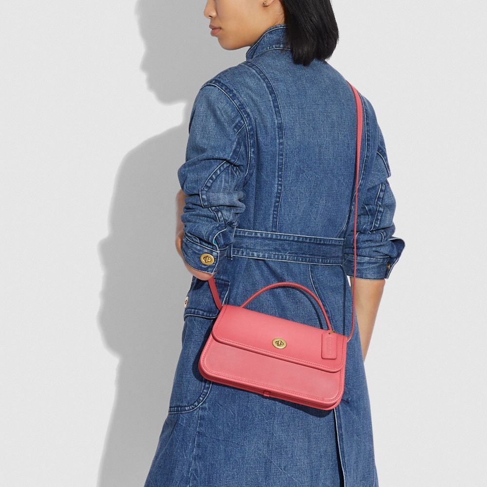 Glovetanned leather| Card slot| Inside zip pocket| Turnlock closure, leather lining| Top handle with 1 1/2" drop| Outside slip pocket| Adjustable strap with 21 1/2" drop for shoulder or crossbody wear| 10 1/2" (L) x 5 1/2" (H) x 2" (W)| The Coach OriginalsStyle No. 129
