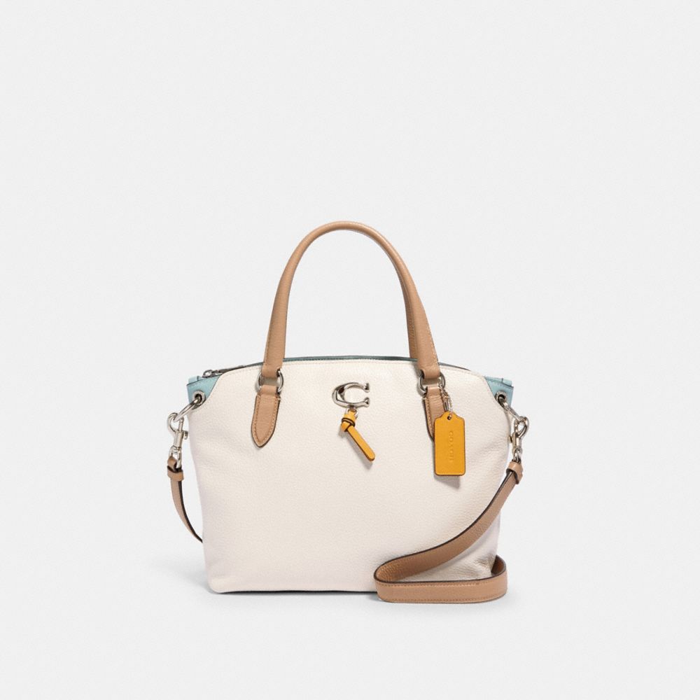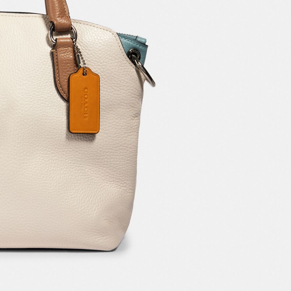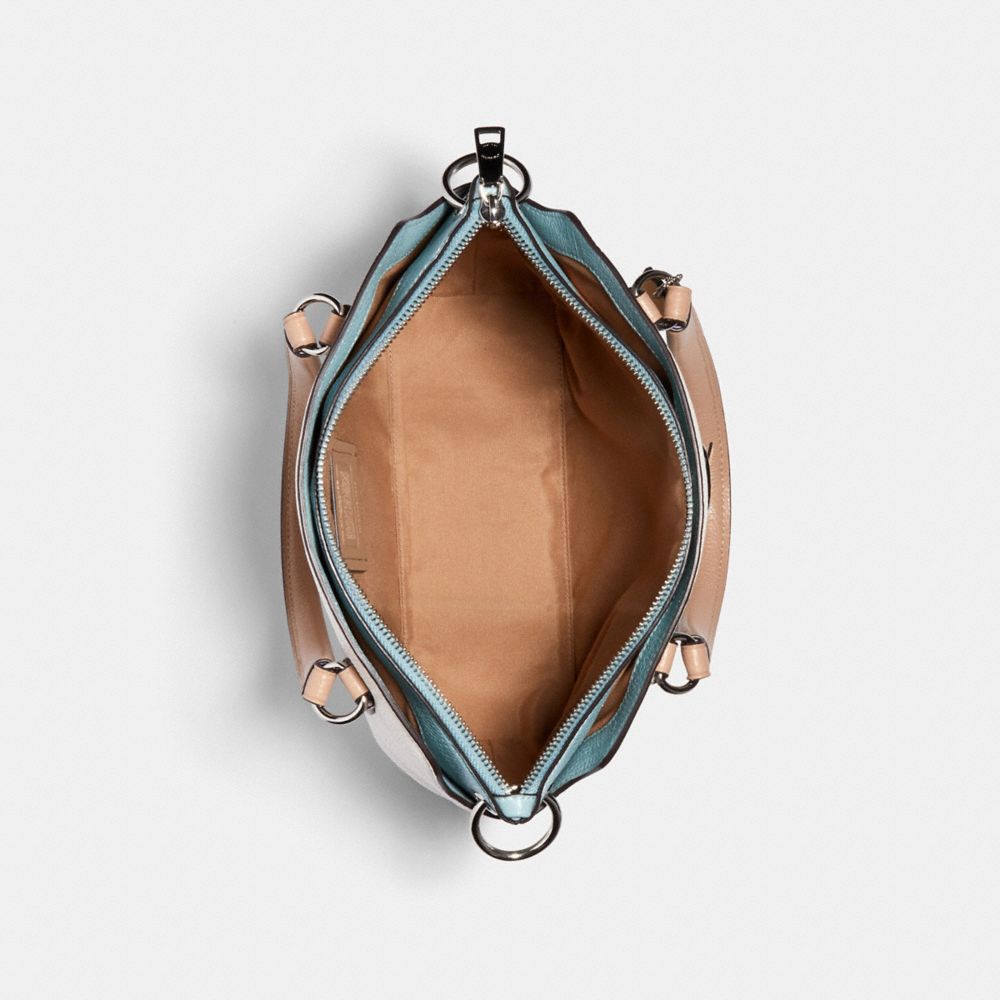 Refined pebble leather| Inside zip pocket| Zip-top closure, fabric lining| Handles with 4 3/4" drop| Outside magnetic snap pockets| Detachable strap with 20 3/4" drop for shoulder or crossbody wear| 10" (L) x 8 1/4" (H) x 4 1/4" (W)