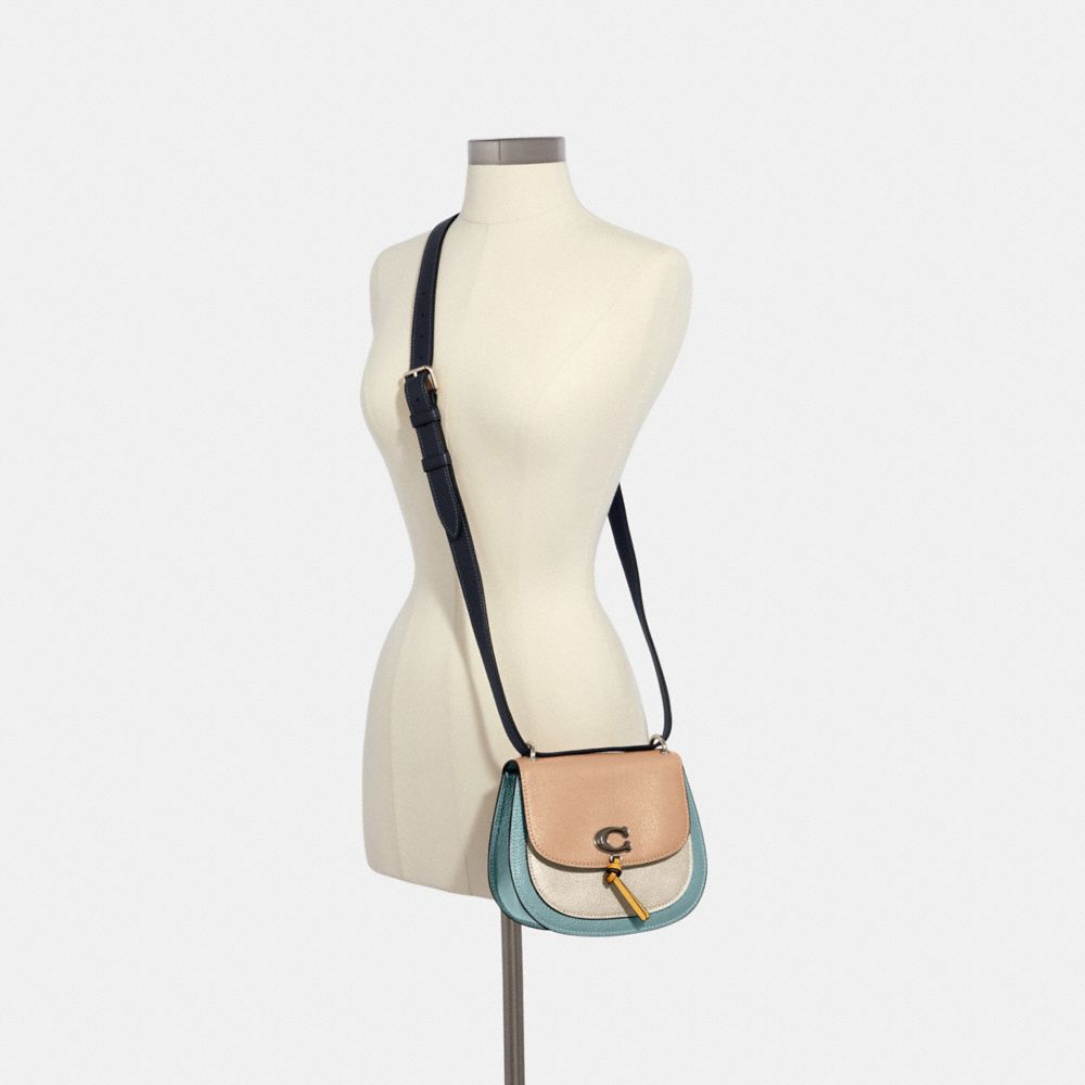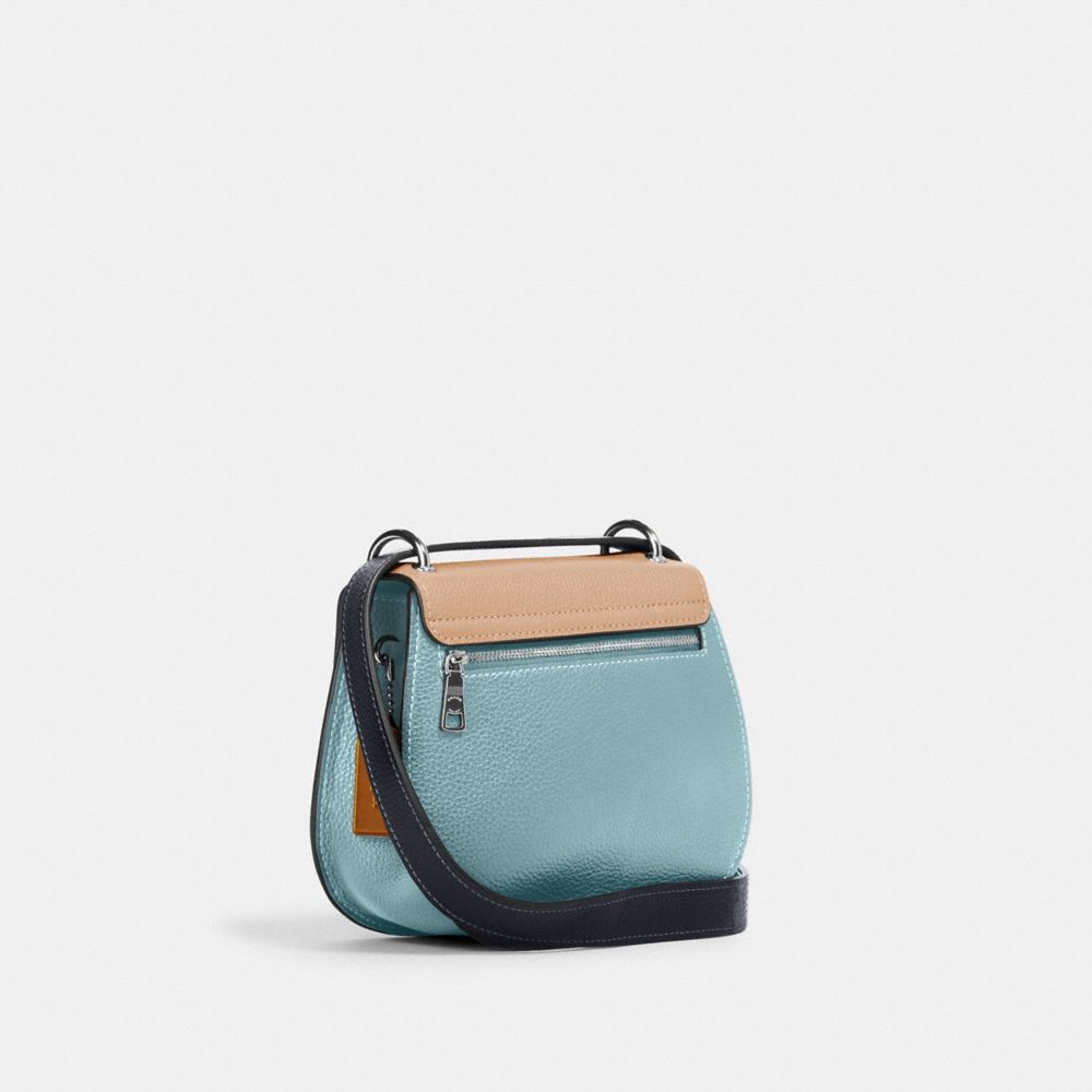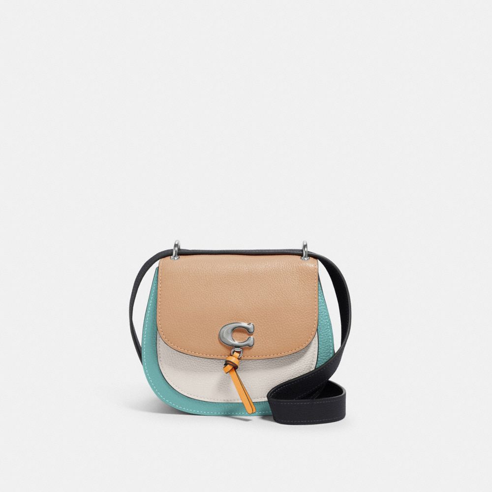 Refined pebble leather| Inside multifunction pockets| Snap closure, fabric lining| Outside zip pocket| Adjustable strap with 22" drop for shoulder or crossbody wear| 7 3/4" (L) x 6 3/4" (H) x 3" (W)