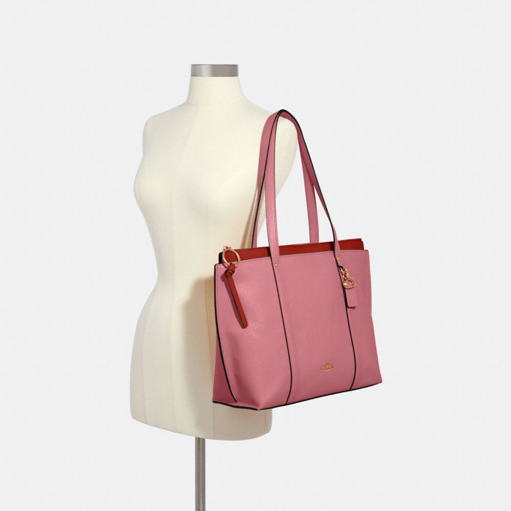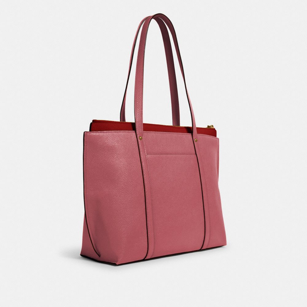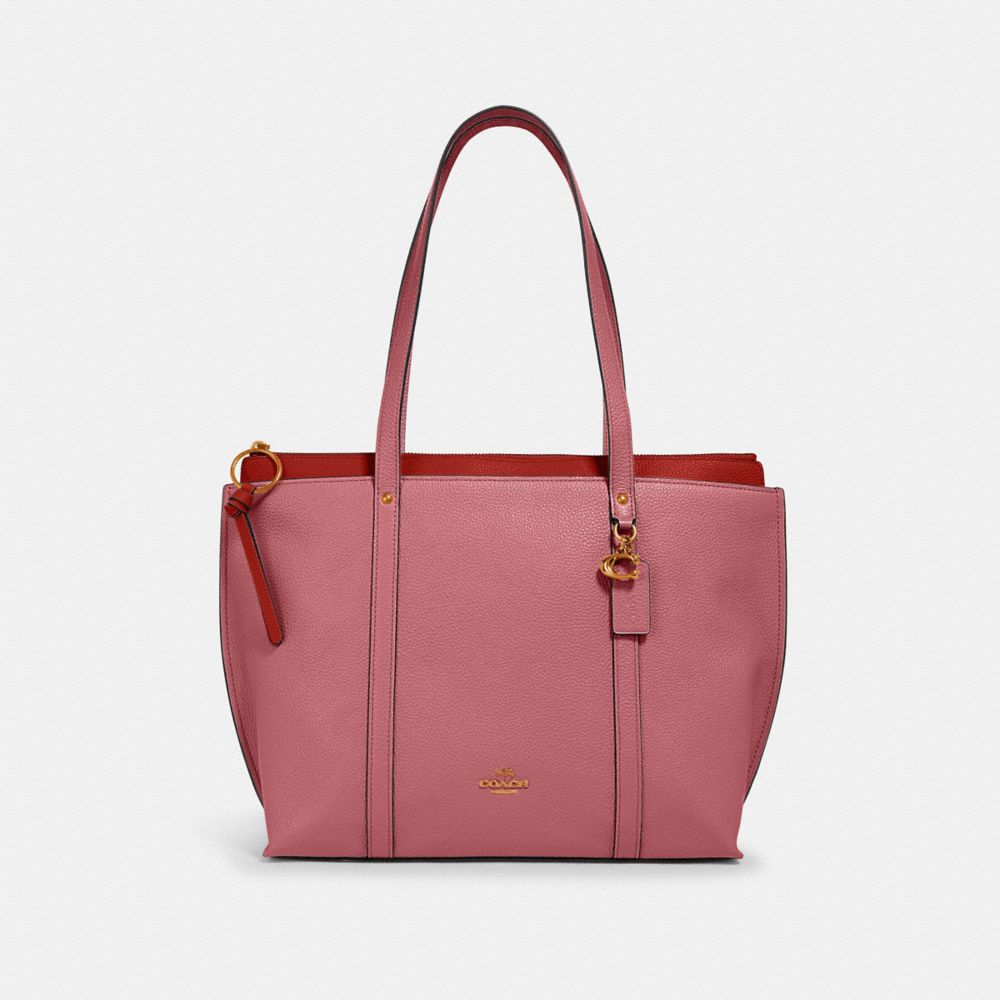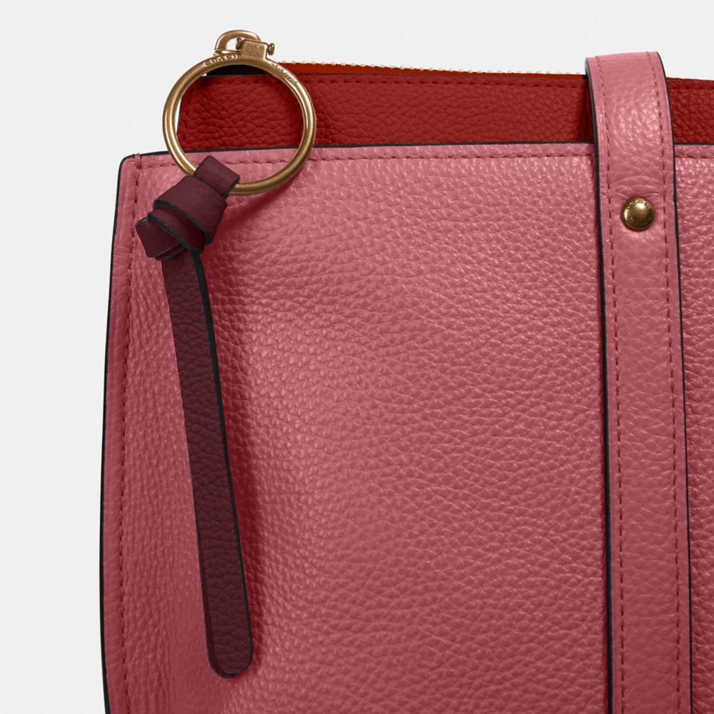Refined pebble leather| Inside zip, cell phone and multifunction pockets| Zip-top closure, fabric lining| Handles with 10" drop| Outside slip pockets| 13 3/4" (L) x 11 1/2" (H) x 5 3/4" (W)