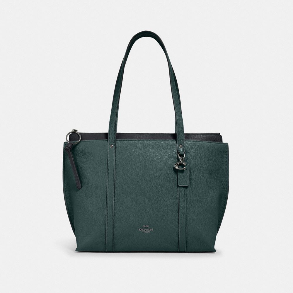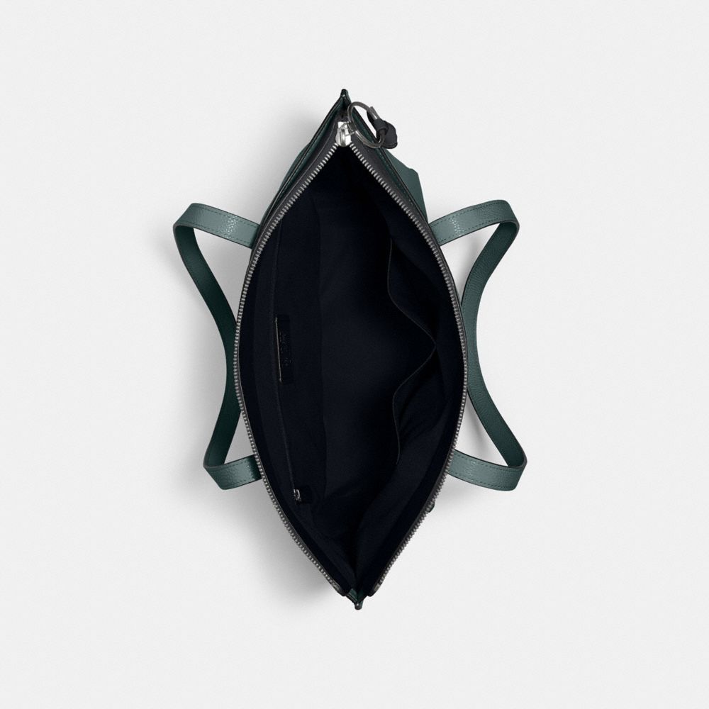 Refined pebble leather| Inside zip, cell phone and multifunction pockets| Zip-top closure, fabric lining| Handles with 10" drop| Outside slip pockets| 13 3/4" (L) x 11 1/2" (H) x 5 3/4" (W)