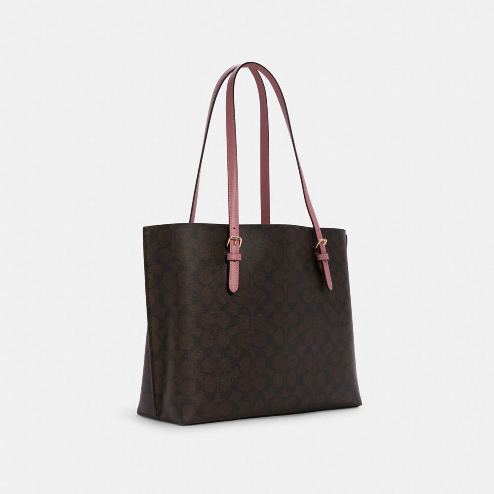 Signature coated canvas and smooth leather| Inside multifunction pocket| Zip-top closure, fabric lining| Handles with 10 1/4" drop| Side open compartments| 13 1/4" (L) x 11" (H) x 5" (W)Style No. 1665