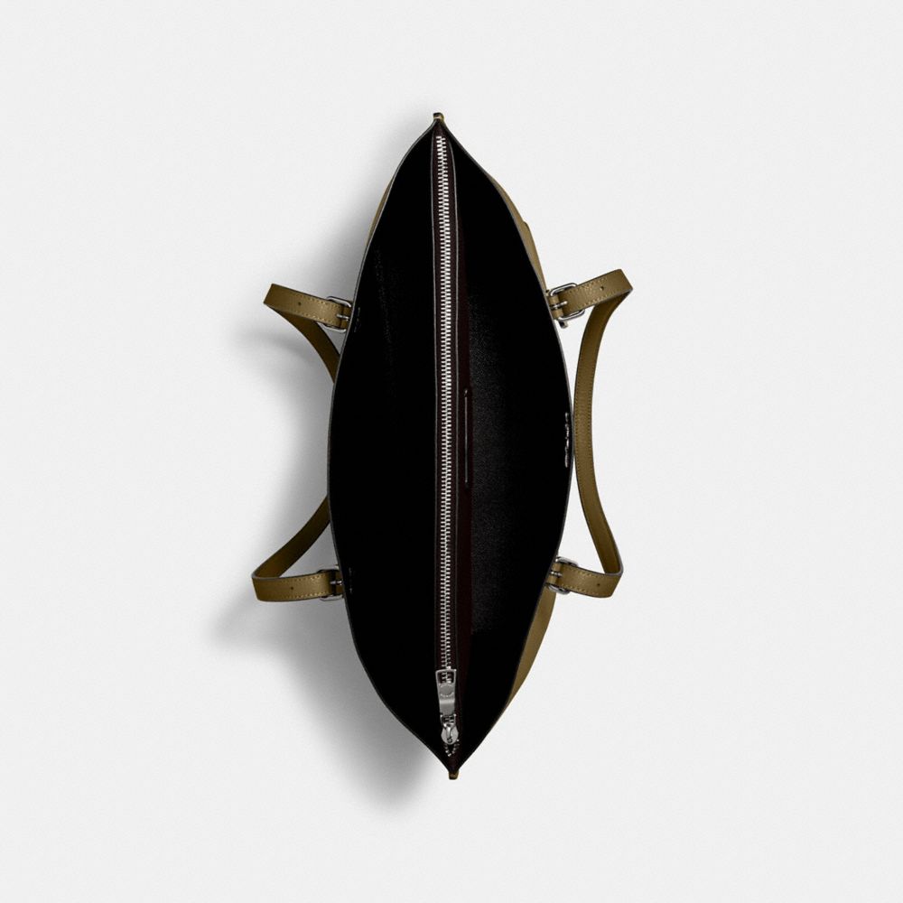 Pebble leather| Inside multifunction pocket| Zip-top closure, fabric lining| Handles with 10 1/4" drop| Side open compartments| 13 1/4" (L) x 11" (H) x 5" (W)