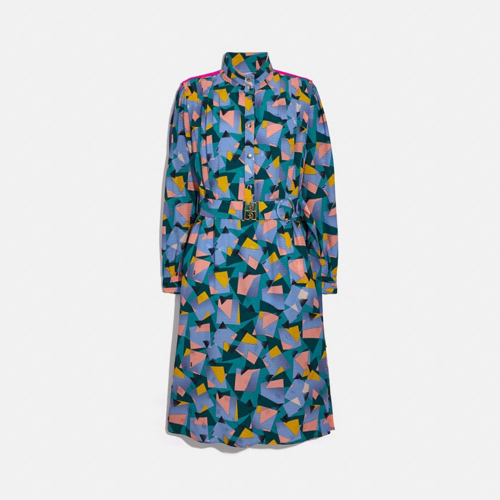 BOLD GEO MOCK NECK DRESS WITH SPORTY STRIPE