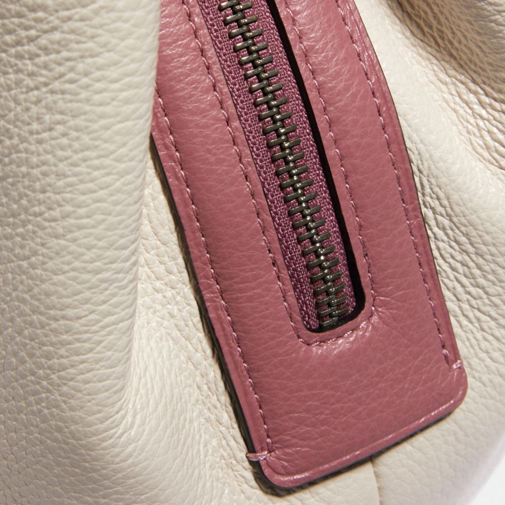 Refined pebble leather| Inside zip, cell phone and multifunction pockets| Center zip compartment| Snap closure, fabric lining| Handles with 9 1/2" drop| 12 1/2" (L) x 9 3/4" (H) x 3 3/4" (W)