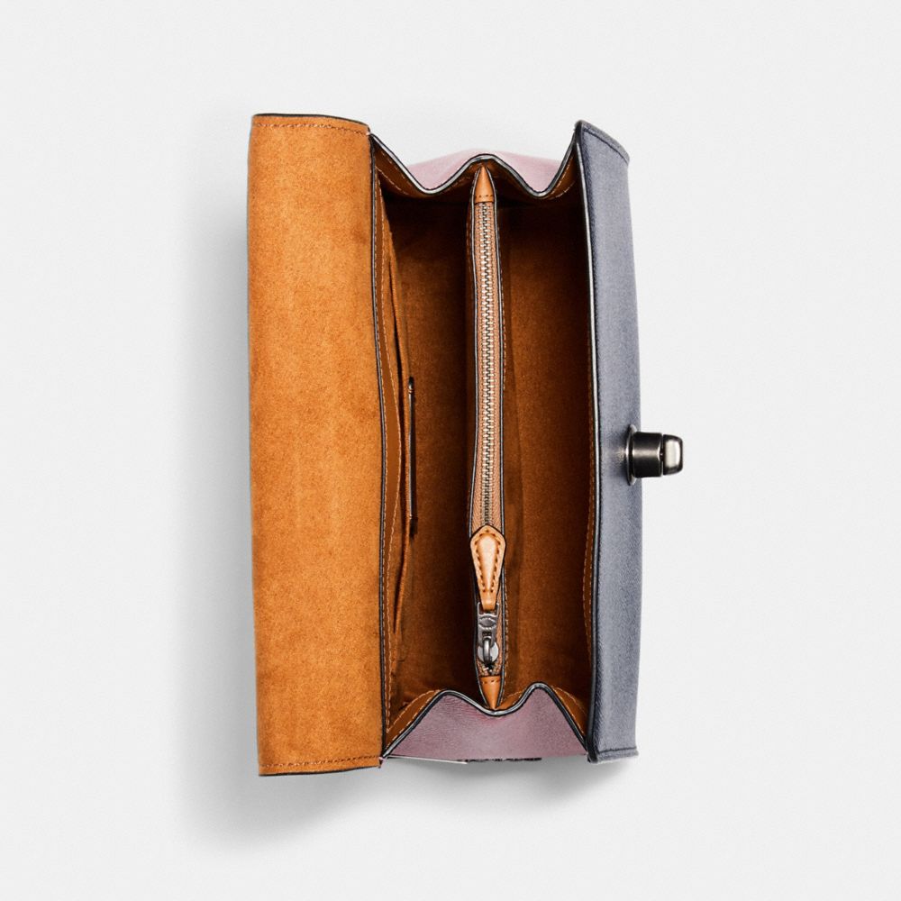 Crossgrain leather| Inside zip and multifunction pockets| Turnlock closure, fabric lining| Top handle with 4 3/4" drop| Outside slip pocket| Detachable strap with 22" drop for shoulder or crossbody wear| 9 3/4" (L) x 7" (H) x 4 1/4" (W)