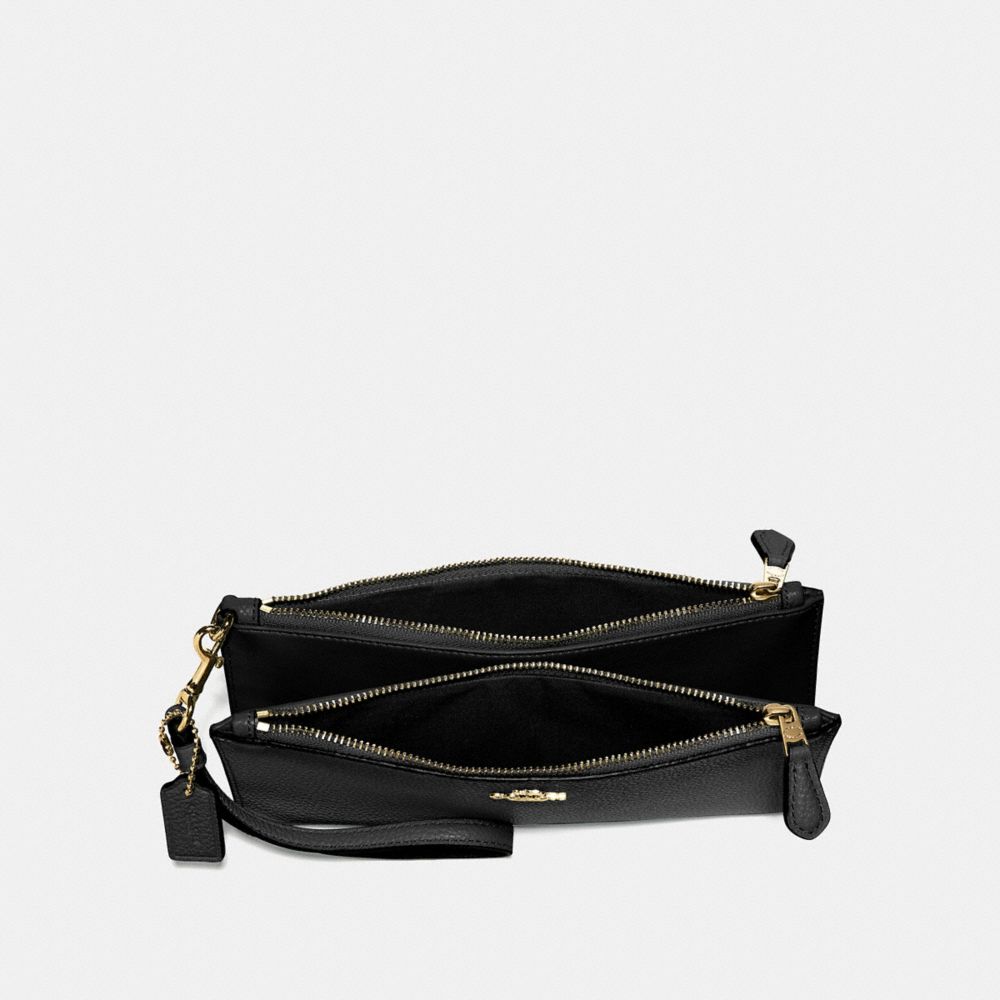 Polished pebble leather| Twelve credit card slots| Full-length bill compartments| Snap closure| Two outside zip pockets| Detachable wrist strap| 8 1/2" (L) x 4 1/2" (H) x 1 1/4" (W)| Fits all phone sizes up to an iPhone X and Samsung S7 Edge
