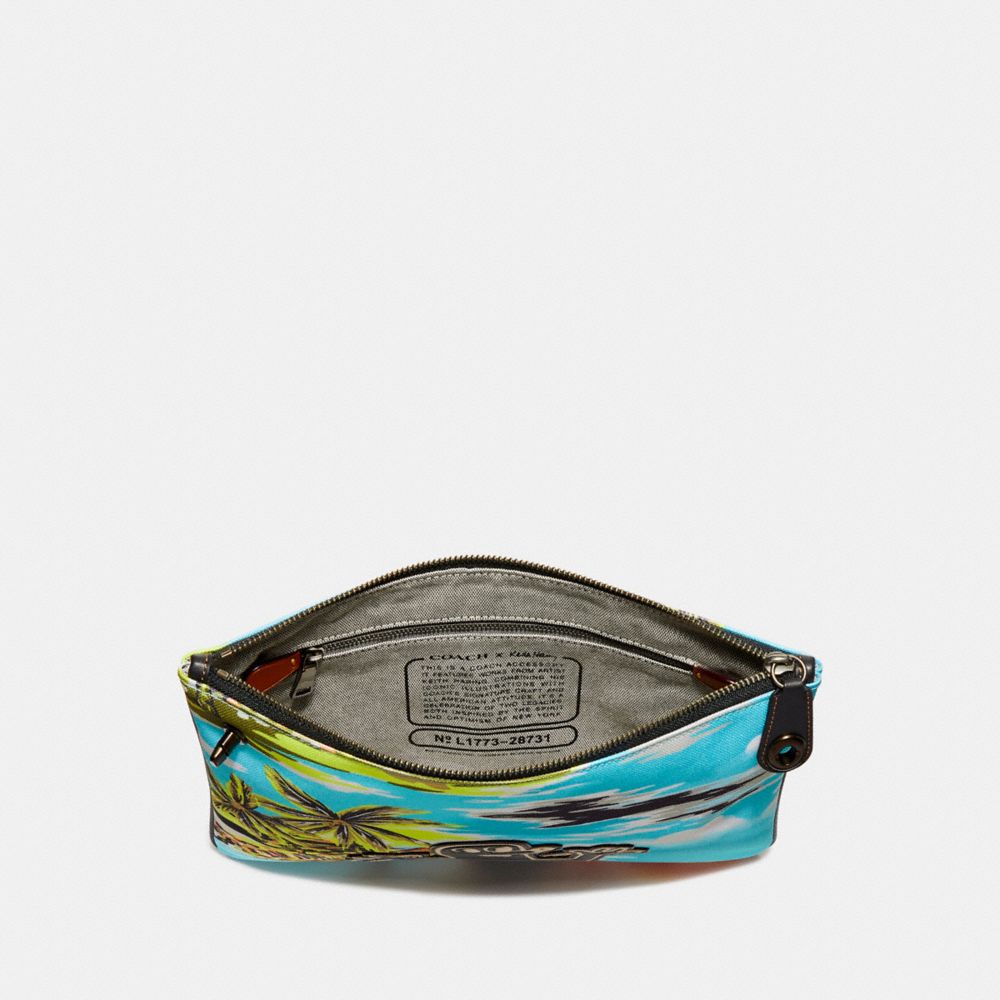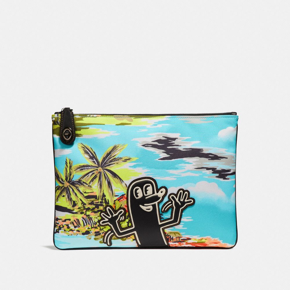 Printed CORDURA® fabric| Inside slip pocket| Zip-top closure, fabric lining| Outside zip pocket| Detachable wrist strap| 11 3/4" (L) x 8 3/4" (H)| Fits iPad up to 9.7" iPad Pro| CORDURA® is a trademark of INVISTA for durable fabric.| Coach x Keith Haring collection| © Keith Haring Foundation. Licensed by Artestar, New York.