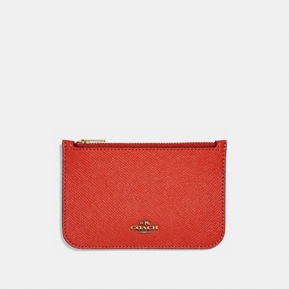 Crossgrain leather| Four credit card slots| Slip pocket| Zip pocket| 5" (L) x 3 1/4" (H)