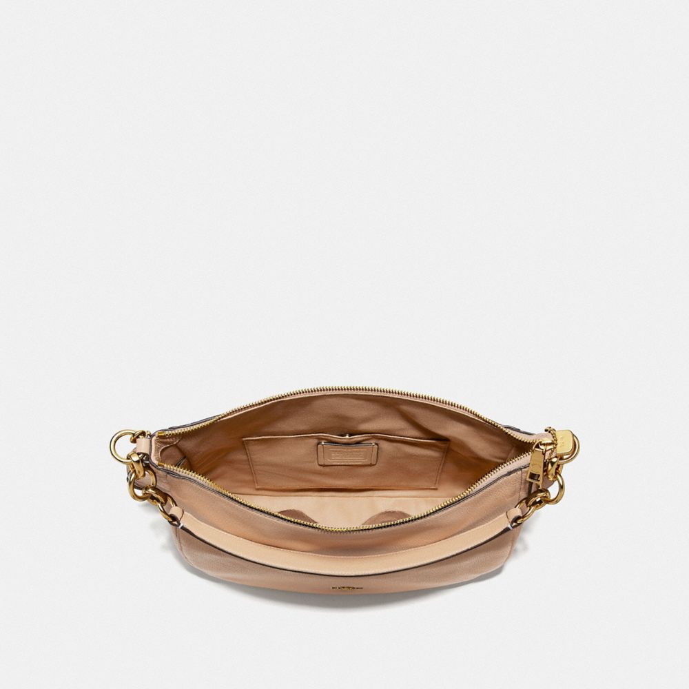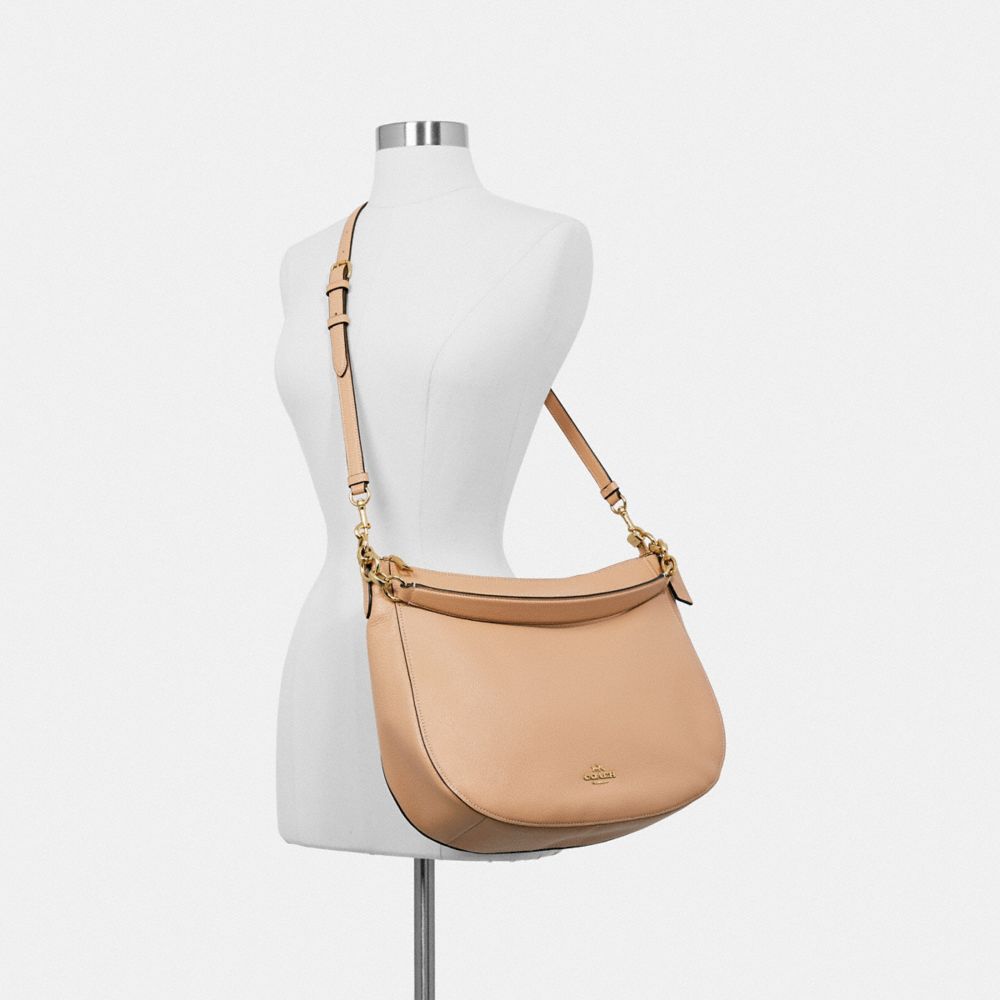 Refined pebble leather| Inside cell phone and multifunction pockets| Zip-top closure, fabric lining| Handle with 8 3/4" drop| Outside zip pocket| Detachable strap with 15 1/4" drop for shoulder wear| 13" (L) x 10 3/4" (H) x 4" (W)