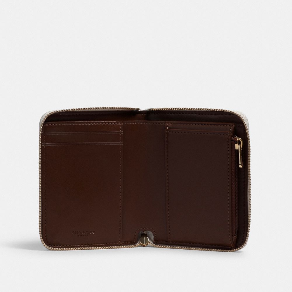 Refined pebble leather| Two credit card slots| Bill compartment| Inside zip coin pocket| Zip-around closure| Outside open pocket| 4 1/2" (L) x 3 3/4" (H) x 3/4" (W)