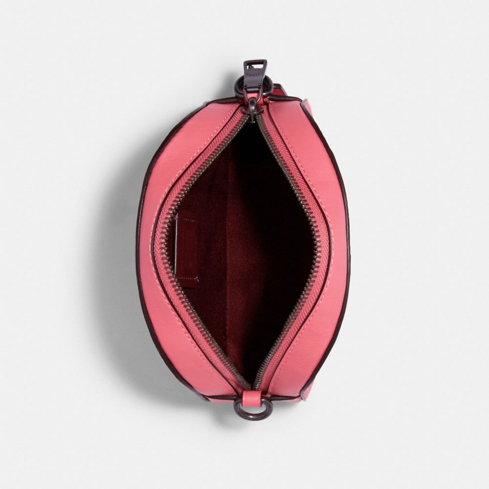 Signature smooth calf leather and smooth calf leather| Two credit card slots| Zip closure, fabric lining| Outside slip pocket| Detachable strap with 23" drop for shoulder or crossbody wear| 6 1/2" (L) x 4 3/4" (H) x 2" (W)