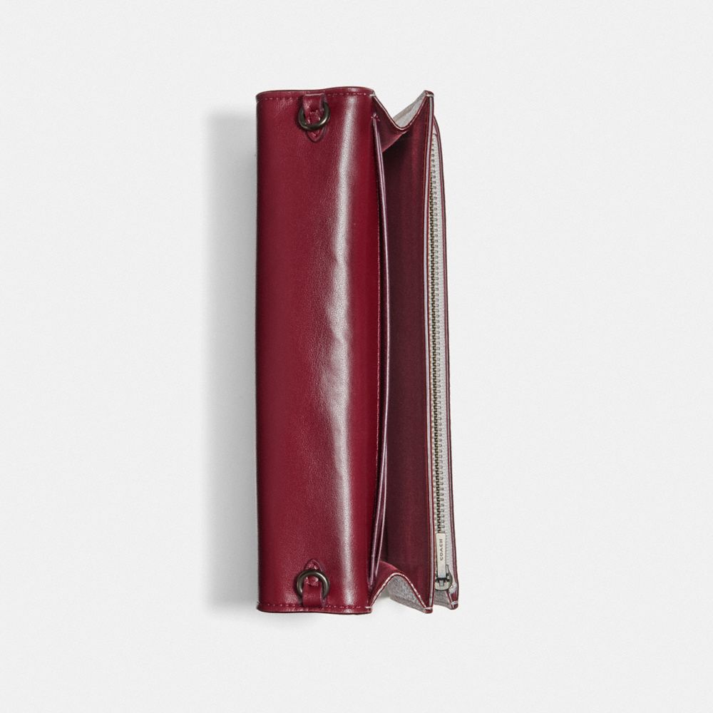 Polished pebble leather| Eight credit card slots| Full-length bill compartment| Inside zip pocket| Turnlock closure| Outside slip pocket| Detachable strap with 23" drop for shoulder or crossbody wear| Instantly change the look of your bag with an interchangeable strap.| 8" (L) x 4 3/4" (H) x 1 1/2" (W)
