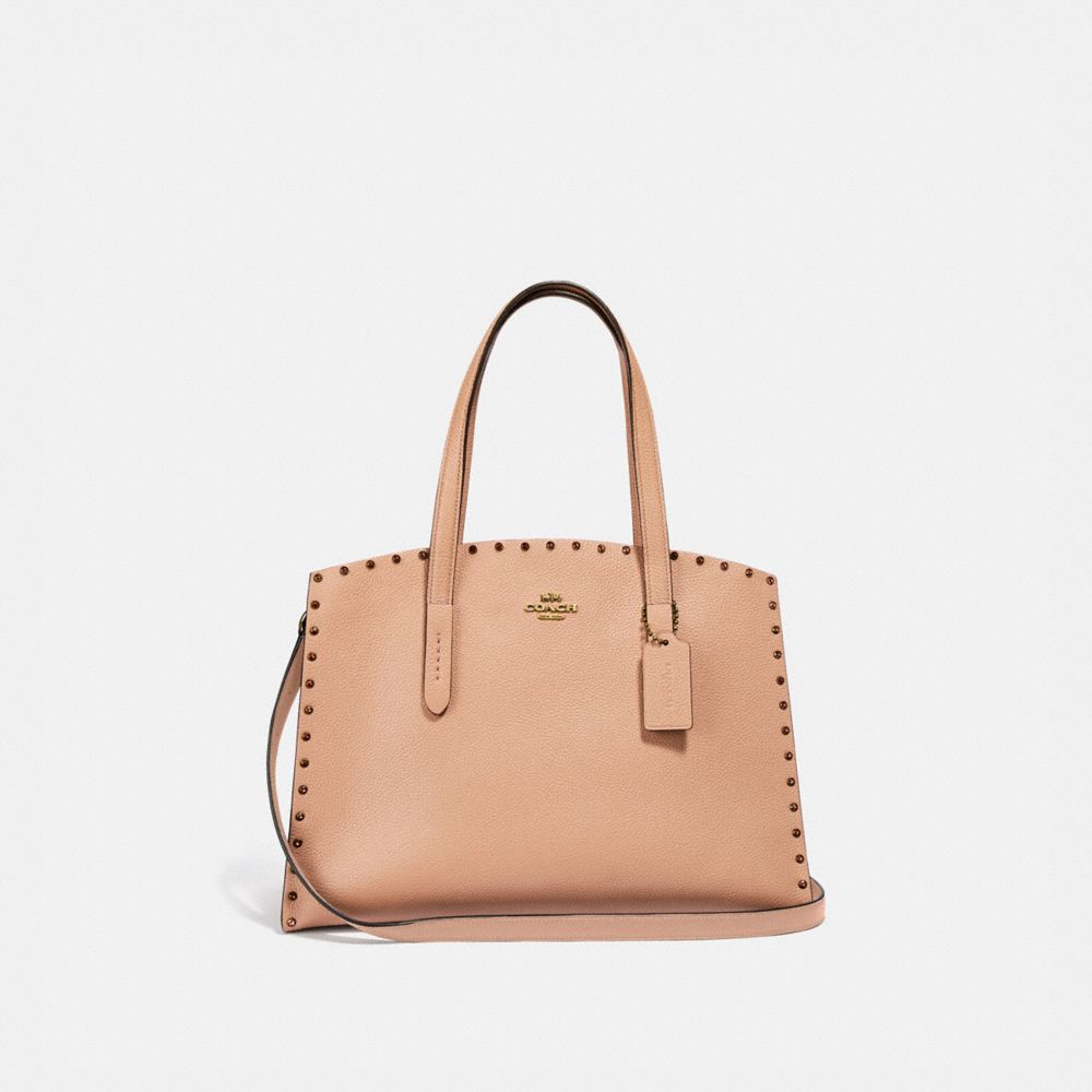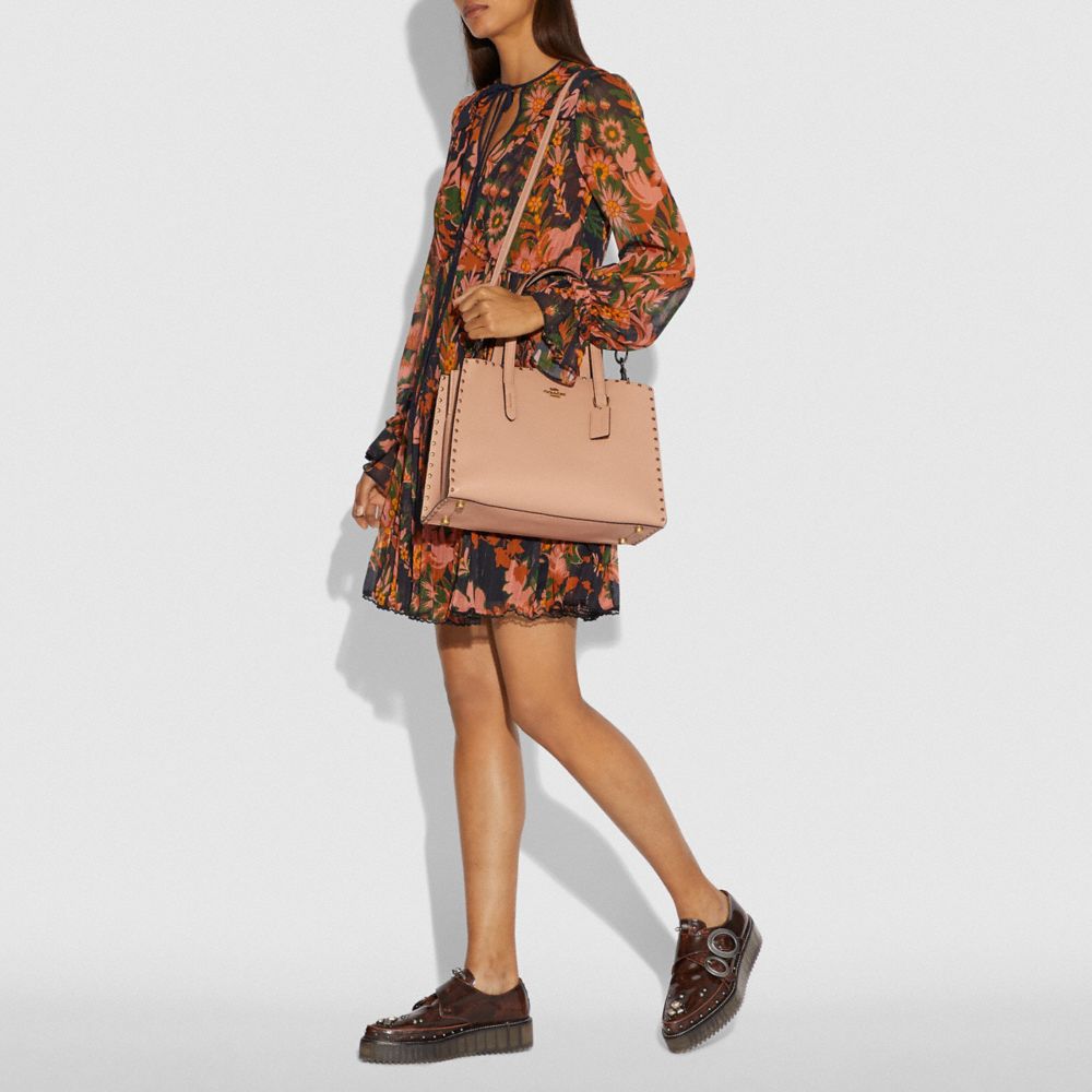 Polished pebble leather| Inside cell phone and multifunction pockets| Center zip compartment| Handles with 6 1/2" drop| Detachable strap with 19 1/2" drop for shoulder or crossbody wear| Compatible with Coach interchangeable straps| Fits a 13" laptop| 14" (L) x 9 1/2" (H) x 5 3/4" (W)